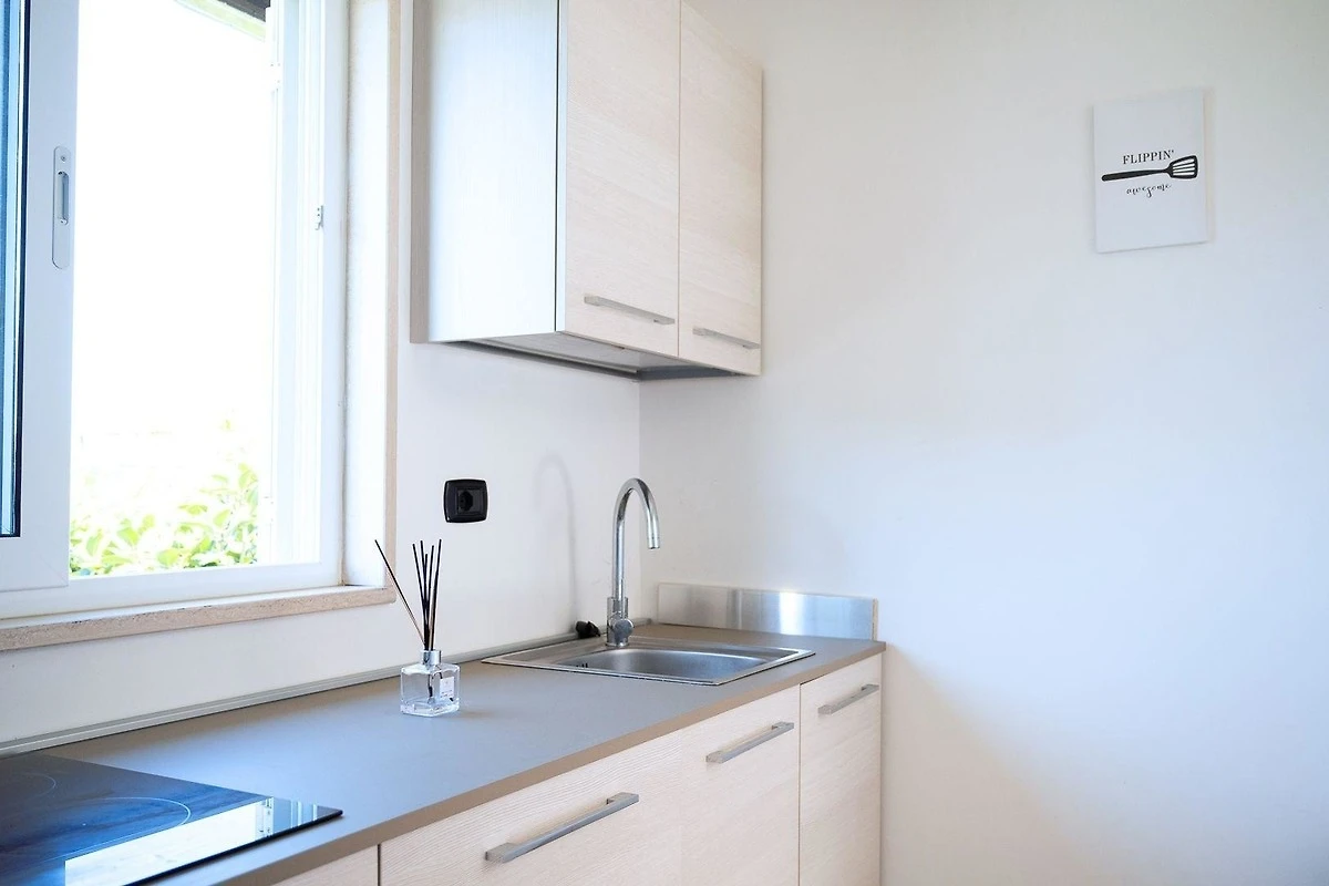 Zu Ihrer Verfügung stehen ein komfortabler Induktionsherd mit 4 Brennern, ein Kühl-/Gefrierschrank, ein grosser Backofen, eine Waschmaschine und natürlich ein komplettes Set an Töpfen, Pfannen, Tellern und Besteck.