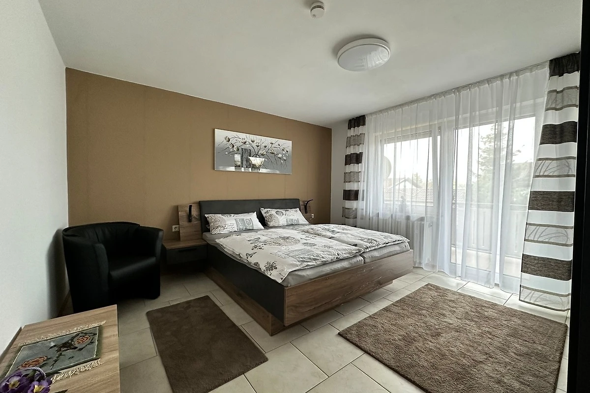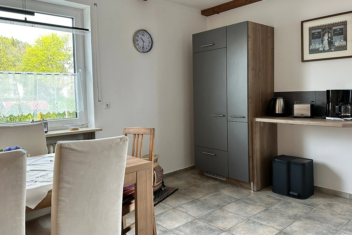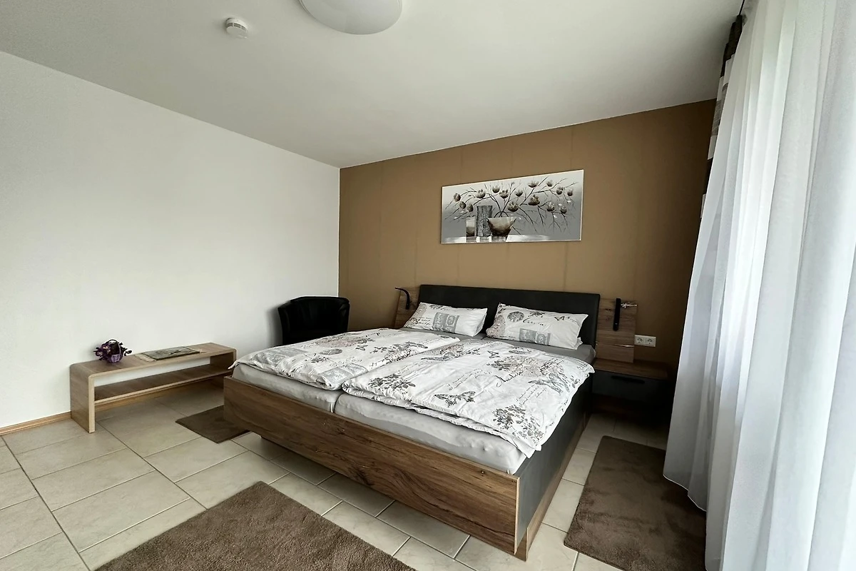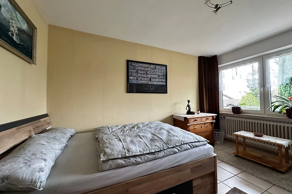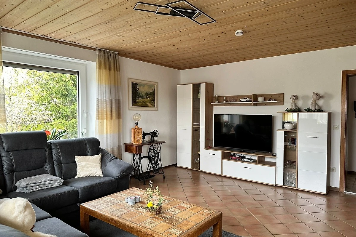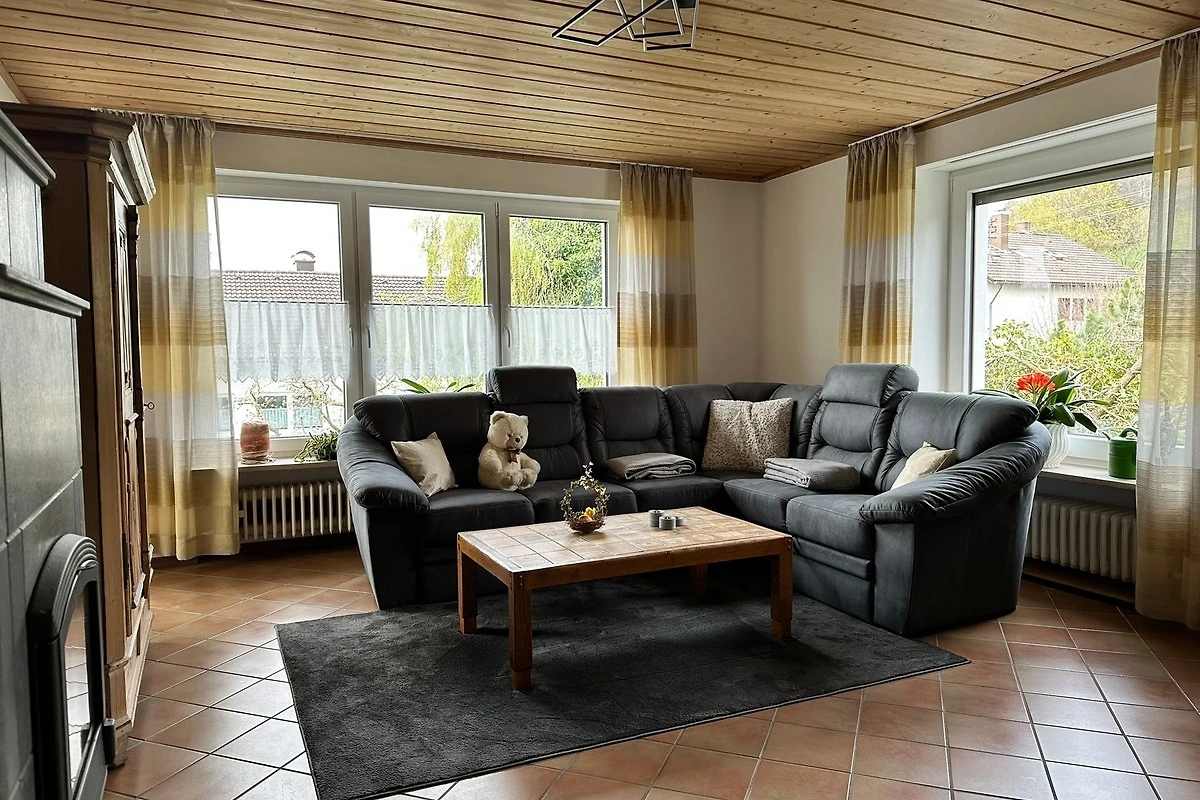 Gemütliche, komplett neu möblierte Ferienwohnung für bis zu 4 Personen, ca. 88 qm, im 1. Stock. Die Wohnung besteht aus einem Wohnzimmer, Küche mit Essbereich, 1 Schlafzimmer mit Doppelbett (180 x 200) und 1 Schlafzimmer mit Doppelbett (140 x 200), neues Bad mit ebenerdiger Dusche und einem WC extra. Garten zum Spielen für Ihre Kinder steht zur Verfügung. Überdachter möblierter Balkon.