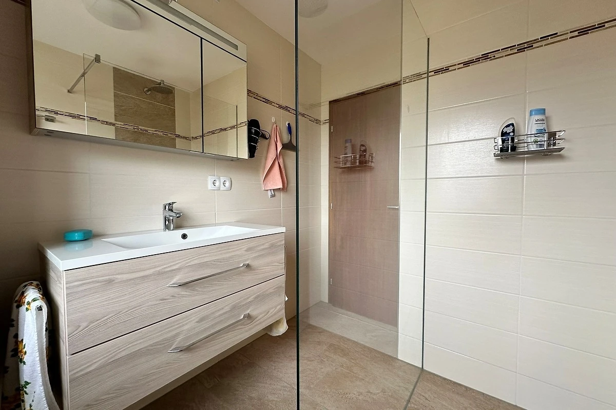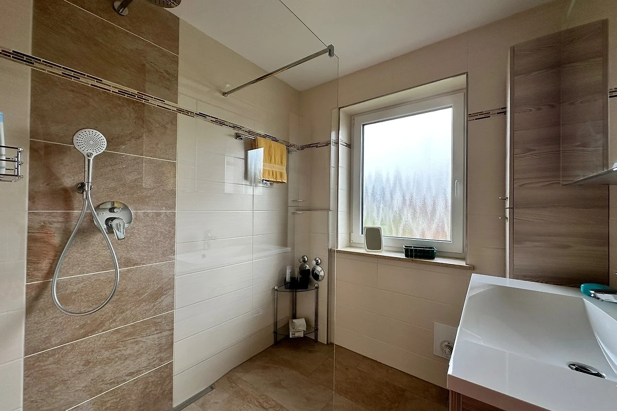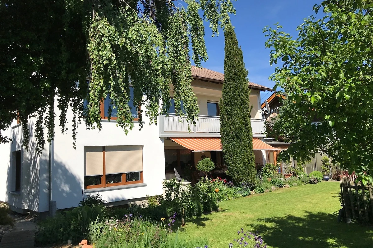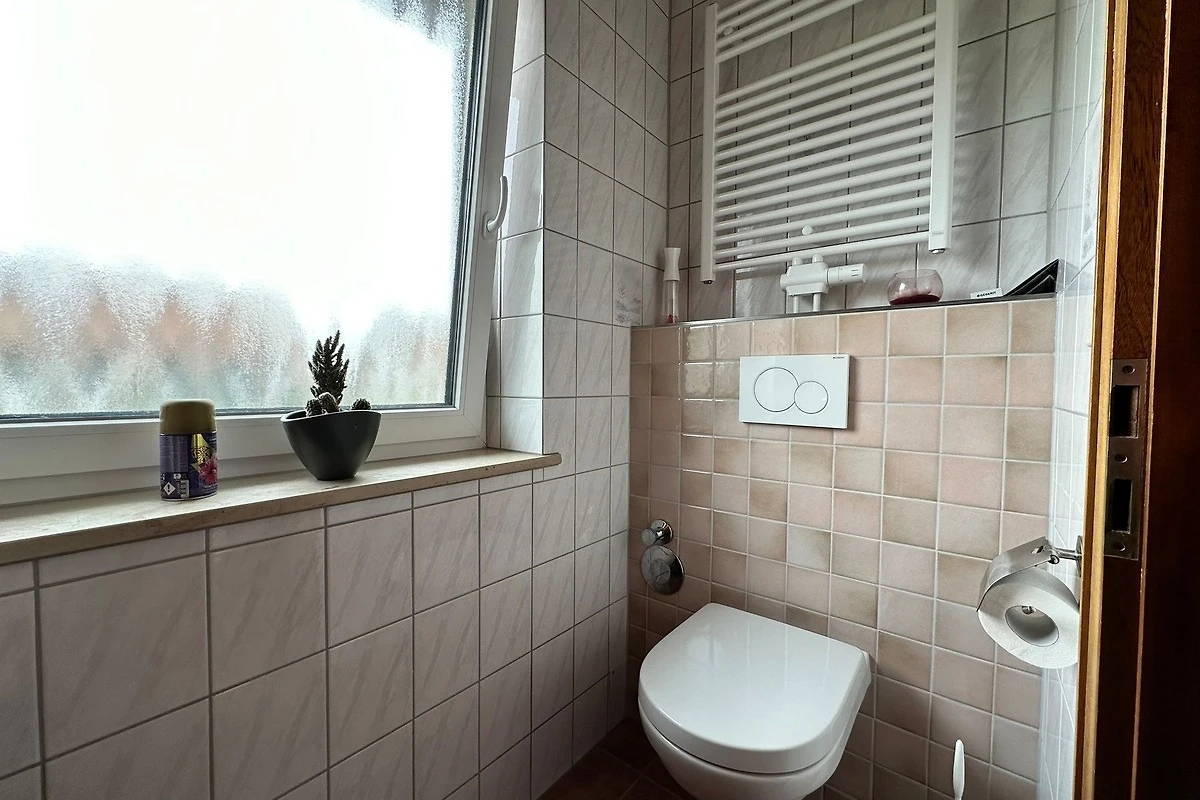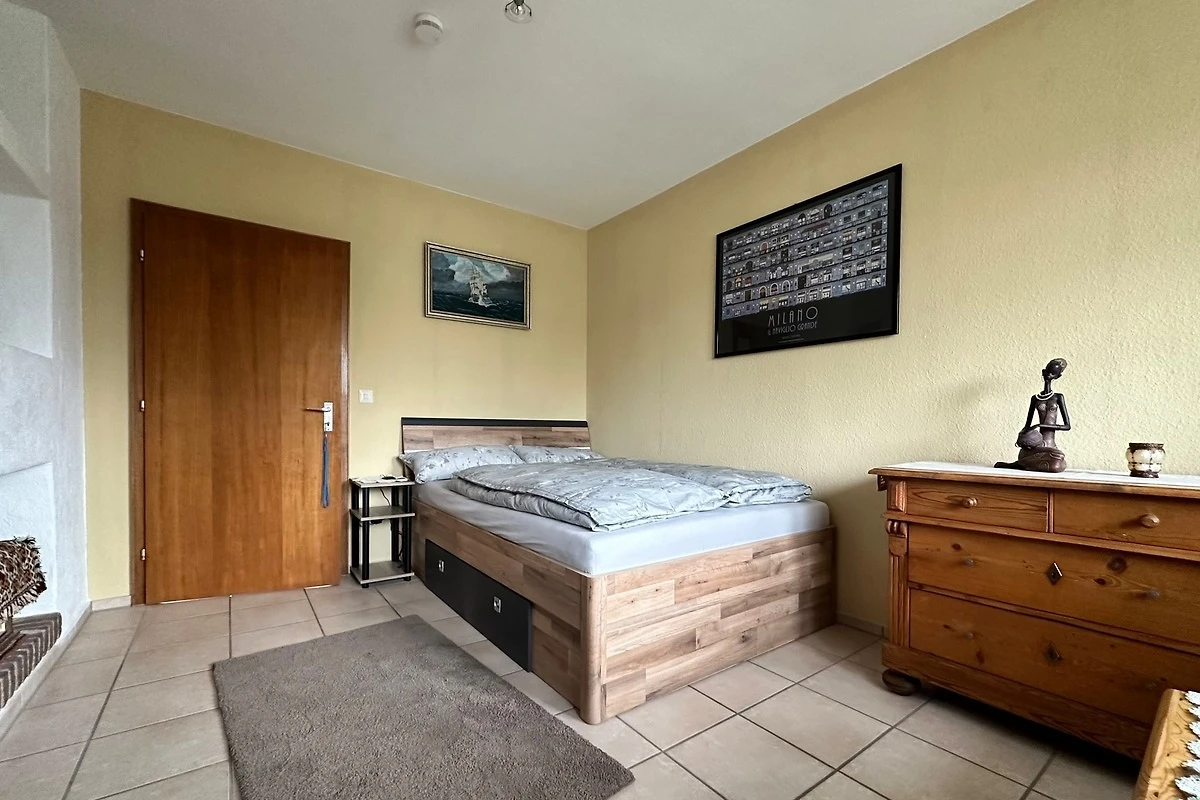 Gemütliche, komplett neu möblierte Ferienwohnung für bis zu 4 Personen, ca. 88 qm, im 1. Stock. Die Wohnung besteht aus einem Wohnzimmer, Küche mit Essbereich, 1 Schlafzimmer mit Doppelbett (180 x 200) und 1 Schlafzimmer mit Doppelbett (140 x 200), neues Bad mit ebenerdiger Dusche und einem WC extra. Garten zum Spielen für Ihre Kinder steht zur Verfügung. Überdachter möblierter Balkon.