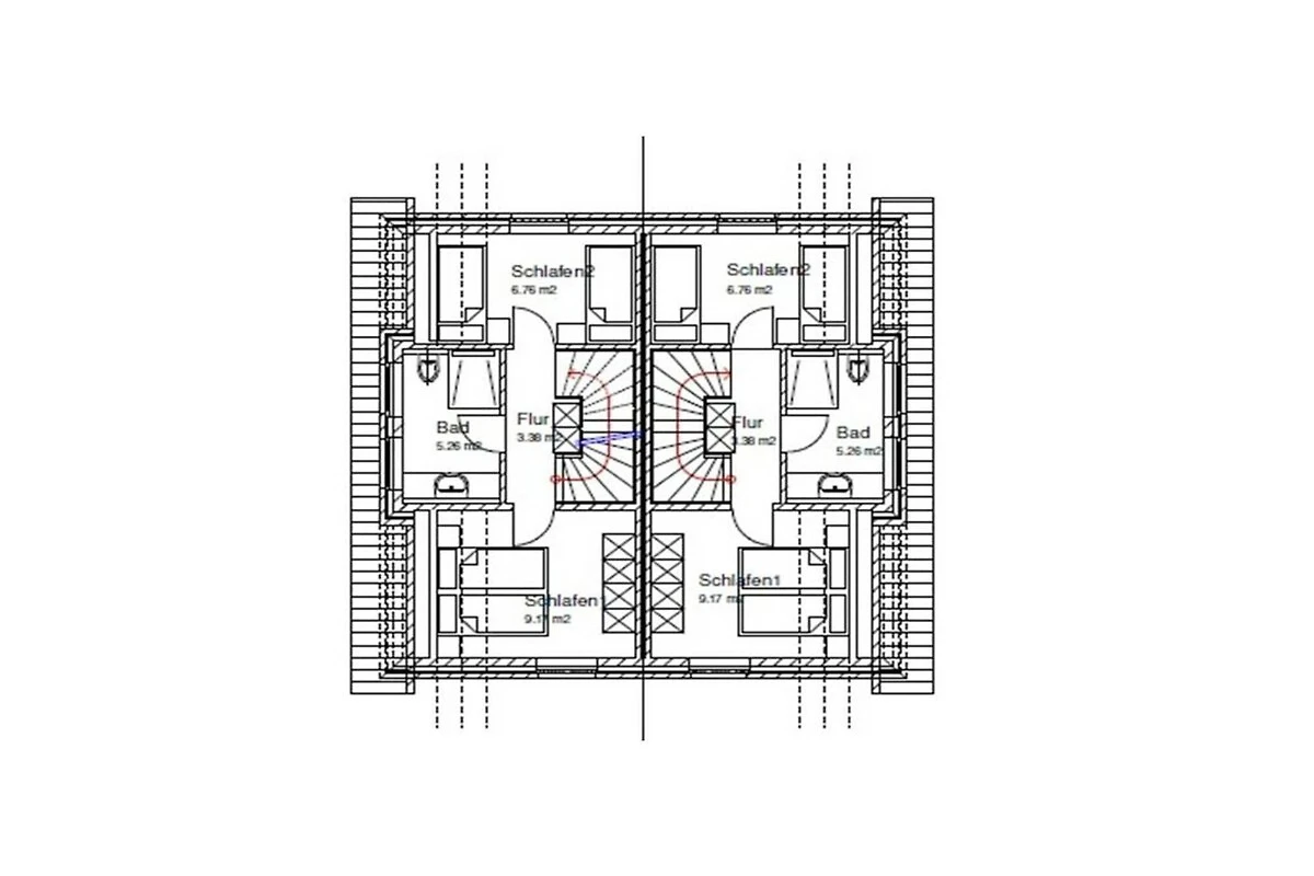 In der 1. Etage: (Eingangshalle(Heizung), Schlafzimmer(, , Doppelbett, Heizung, Fliegenfenster), Schlafzimmer(, , Einzelbett, Einzelbett, Heizung, Fliegenfenster), Badezimmer(, Toilette, Dusche, Waschbecken, Heizung, Föhn))