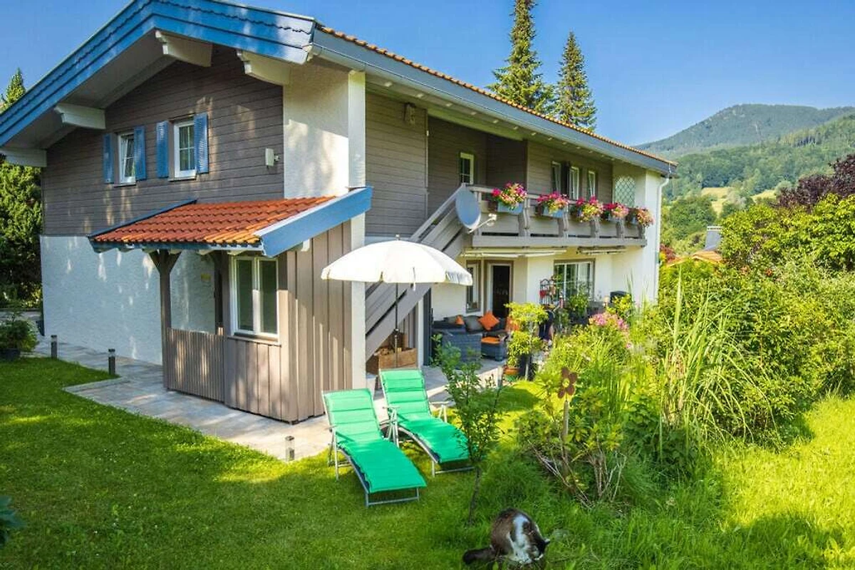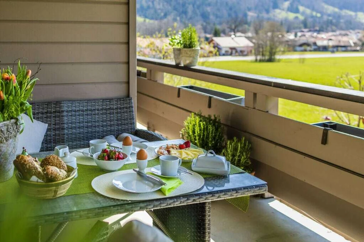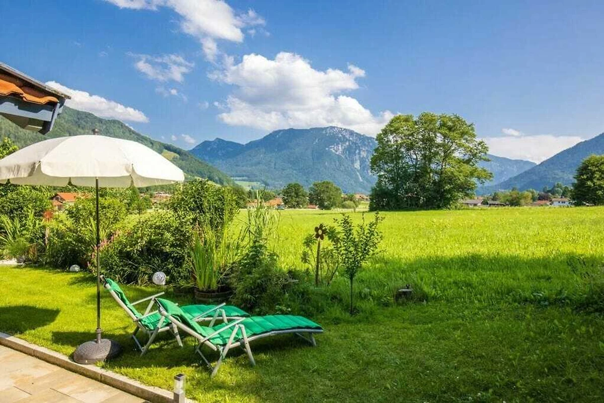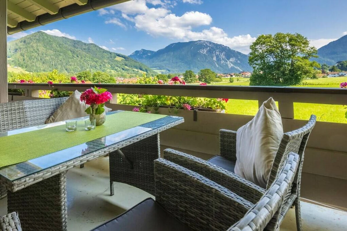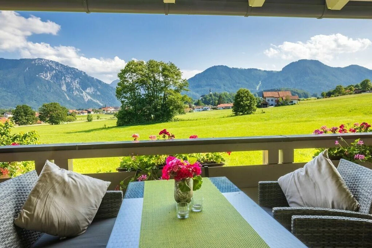 Beste Aussicht auf das Bergpanorama der bayerischen Alpen vom eigenen, witterungsgeschützten Balkon. Parkplatz direkt am Haus. Garten mit Sonnenliegen. 40" Flat-TV, kostenloses WLAN. Separater Abstellraum für Fahrräder / Ski, Lademöglichkeit für E-Bikes.