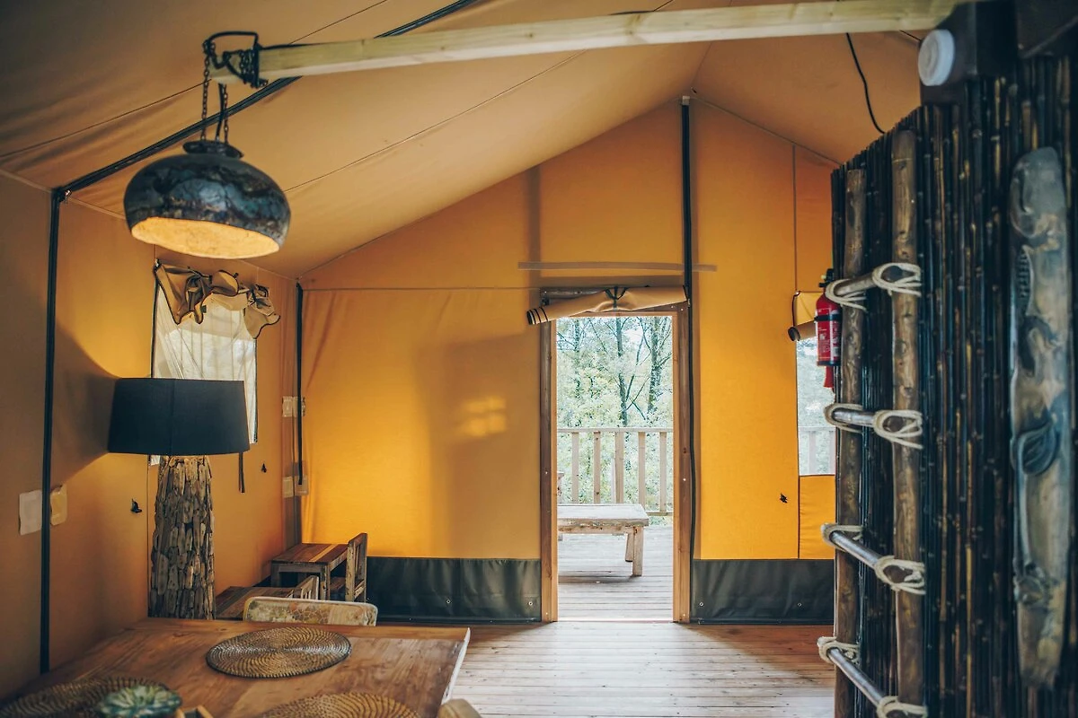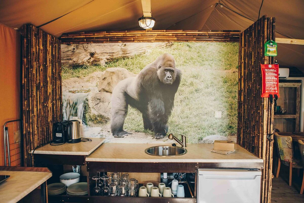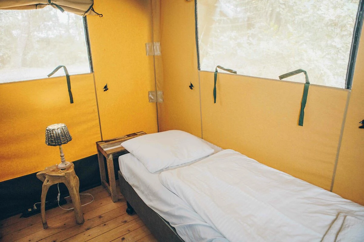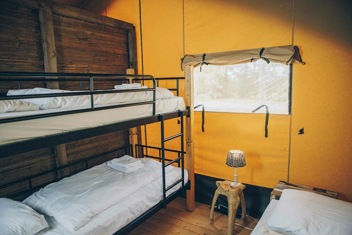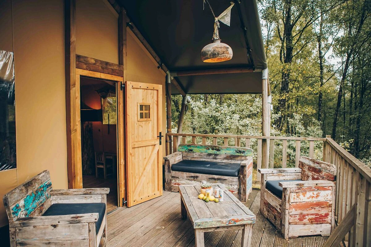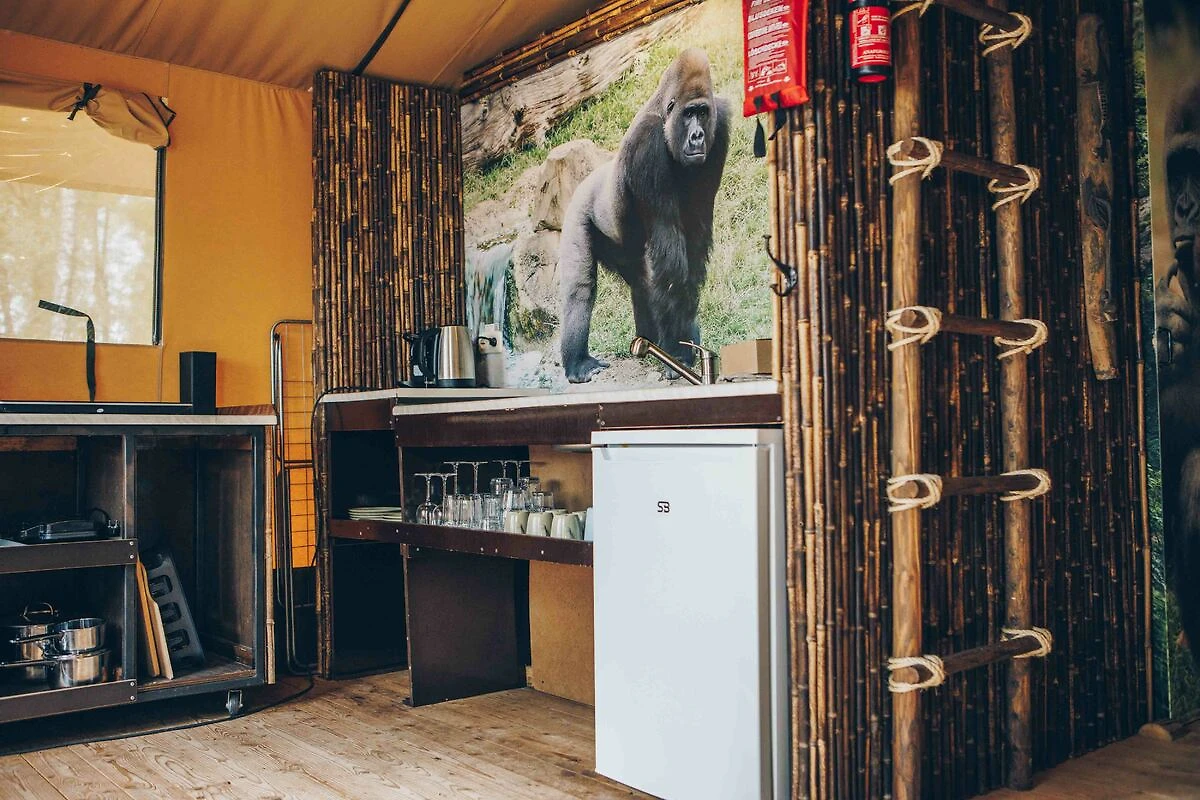 Tauchen Sie ein in eine Welt voller Safari-Feeling, mitten im Grünen. Unsere stimmungsvollen Glamping-Zelte für 5 Personen sind im afrikanischen Stil eingerichtet und jedes bietet ein einzigartiges Thema: Übernachten Sie zum Beispiel zwischen Nashörnern, Gorillas, Nilpferden oder Giraffen. Mit zwei Schlafzimmern – darunter ein Elternschlafzimmer mit Doppelbett und ein Kinderzimmer mit Einzel- und Etagenbett – ist das Zelt ideal für bis zu fünf Personen. Der Holzfussboden und die grosszügige Veranda sorgen für zusätzlichen Komfort und eine warme Atmosphäre.Komfort wie zu Hause – mitten in der Natur