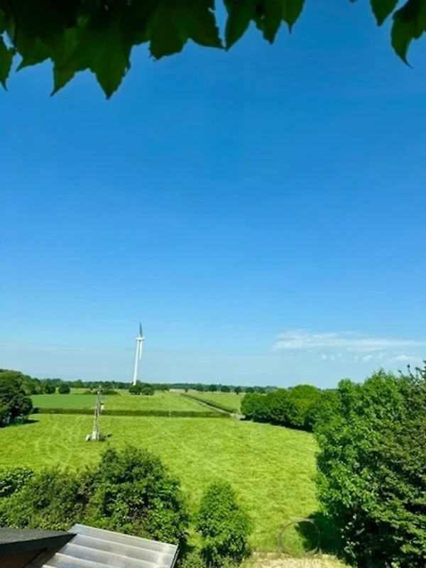 Im 3. Stock befindet sich das grosse Bett. Von dort hat man eine tolle Aussicht über die Felder und Wiesen.