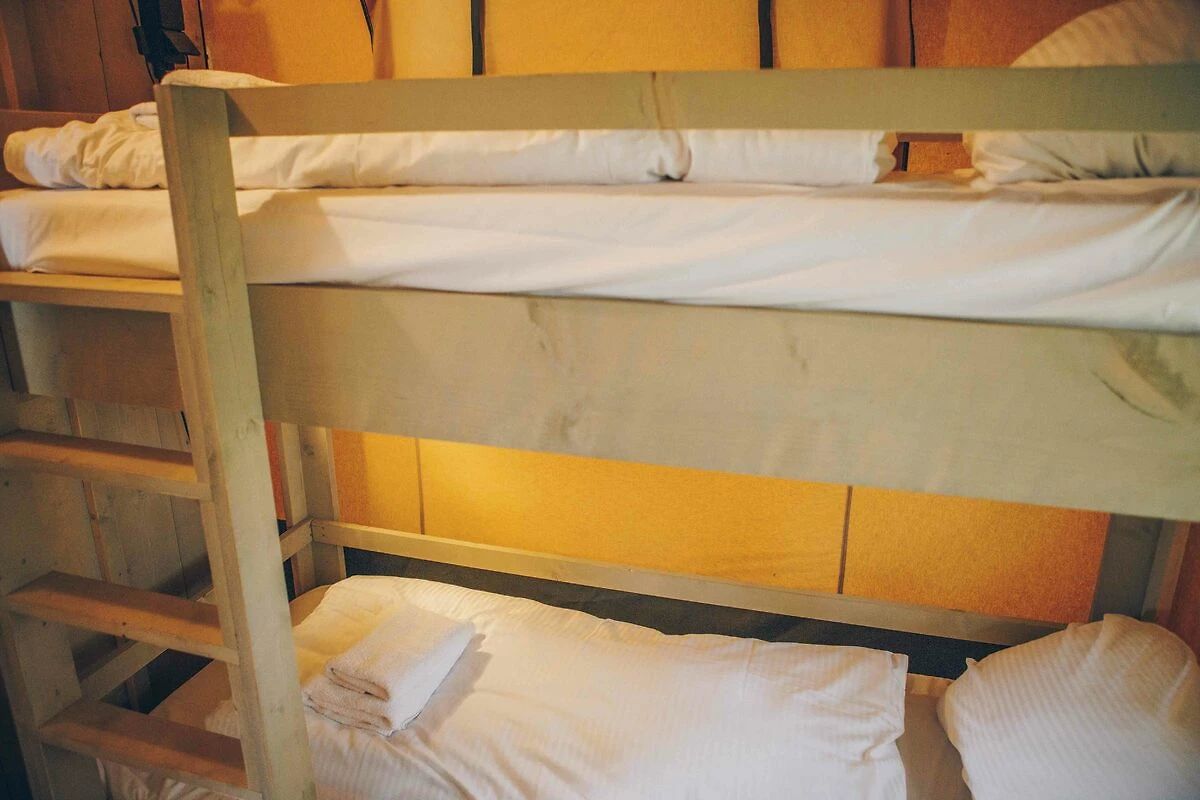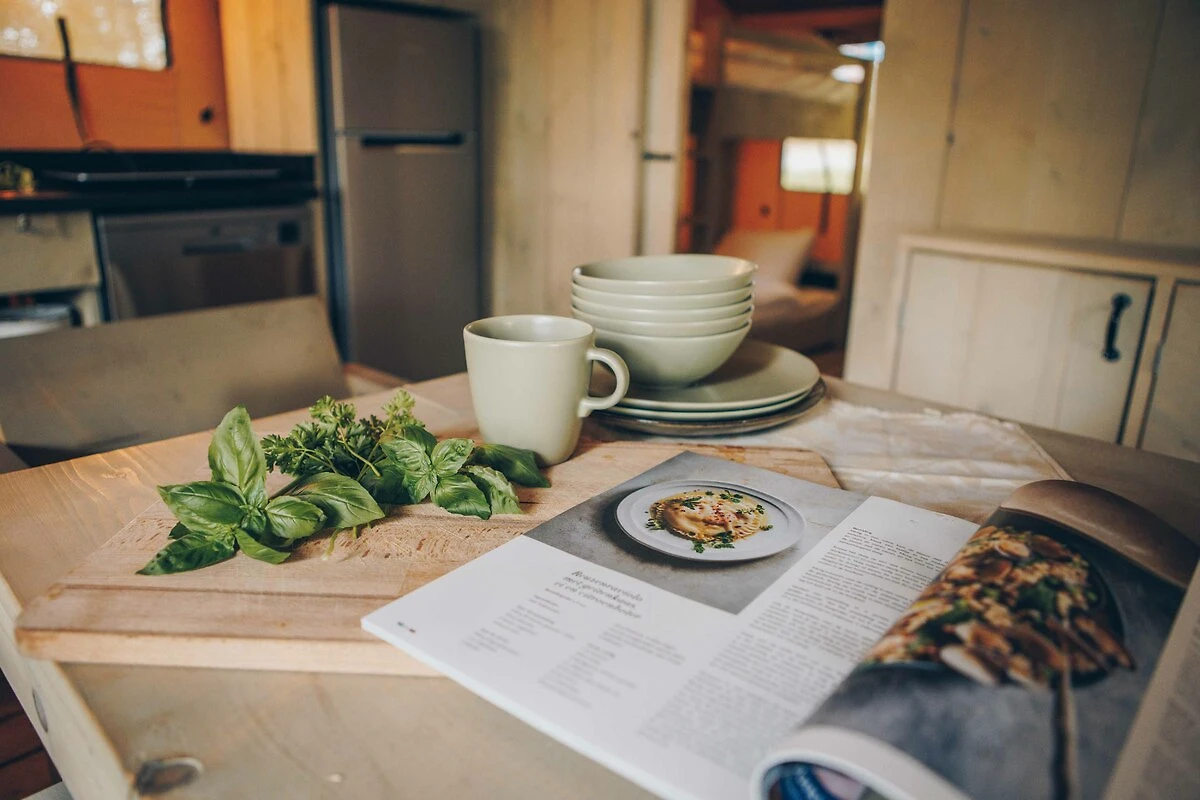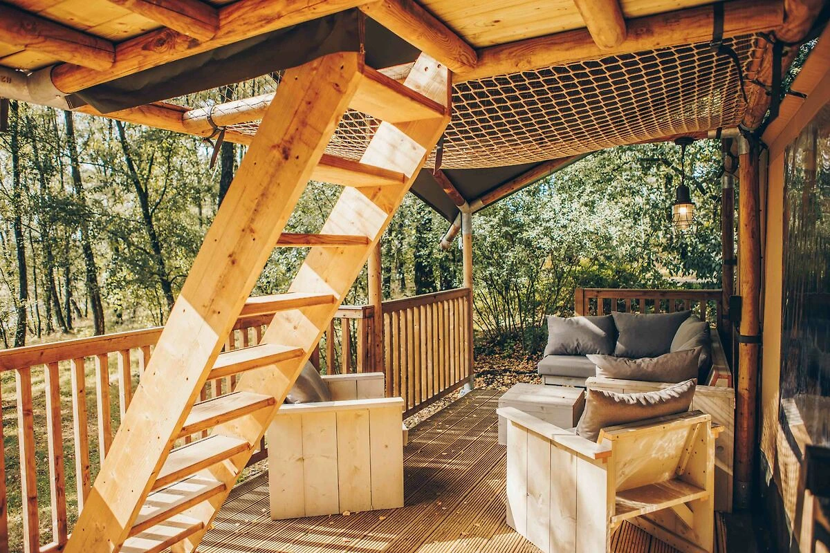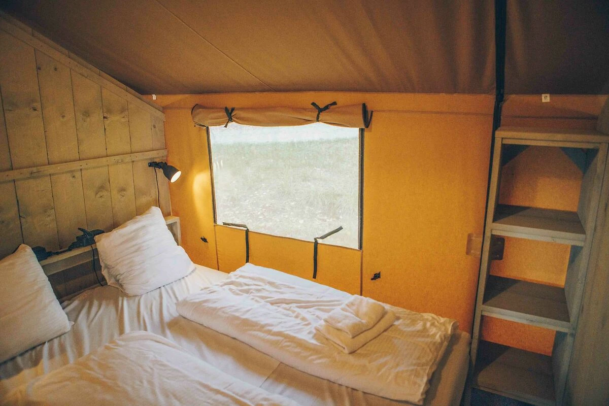 Geniessen Sie ein einzigartiges Urlaubserlebnis in unserem geräumigen Glamping-Zelt für bis zu 7 Personen. Mit drei separaten Schlafzimmern, bequemen Betten und komplett ausgestatteter Einrichtung erleben Sie den Charme des Campings, ohne auf Luxus und Komfort verzichten zu müssen. Die Glamping-Zelte sind für maximal 7 Personen eingerichtet und verfügen über 3 Schlafzimmer. Im Elternschlafzimmer befindet sich ein Doppelbett (mit Moskitonetz), im zweiten Schlafzimmer ein Einzelbett und ein Etagenbett und im dritten Schlafzimmer zwei Einzelbetten. Der Holzboden und die stimmungsvolle Einrichtung sorgen für eine warme, heimelige Atmosphäre.Stilvolles Leben im Freien auf der Veranda