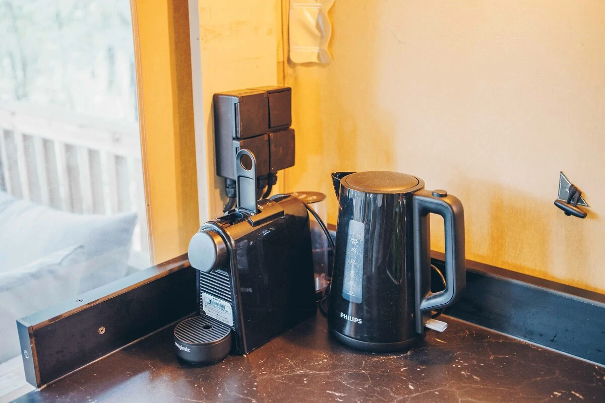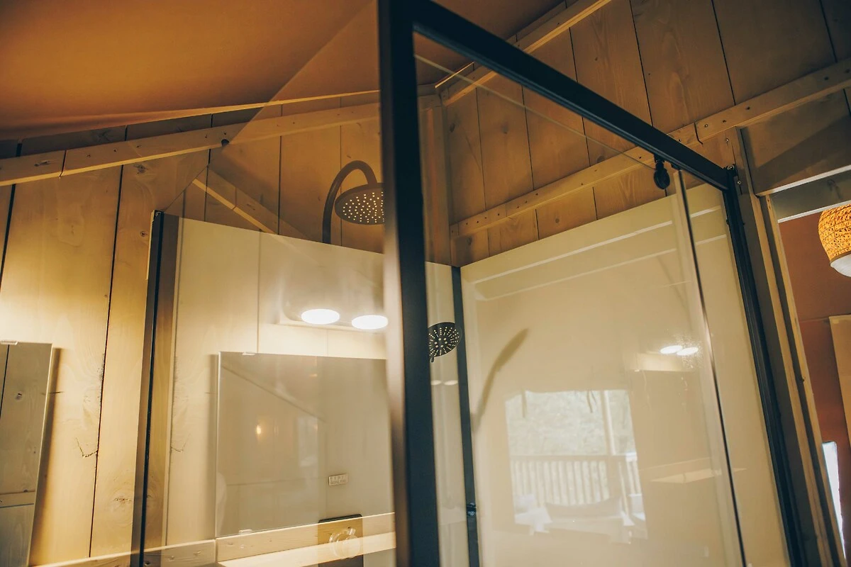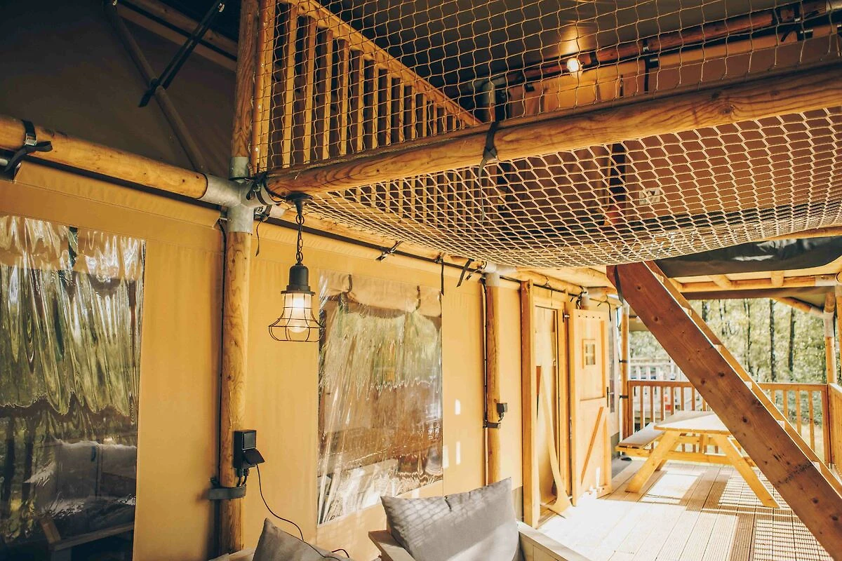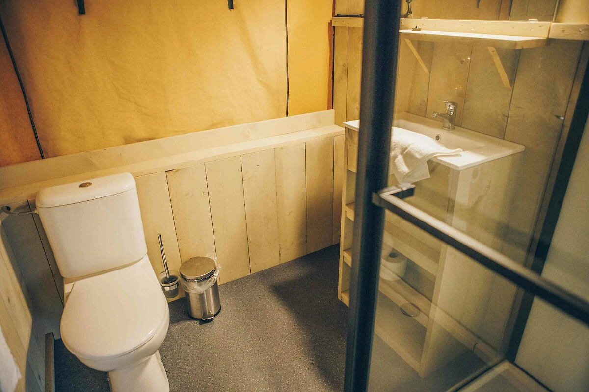 Beginnen Sie den Tag mit einer frisch gebrühten Tasse Kaffee auf der Veranda, nehmen Sie Platz im Loungeset und lauschen Sie den Vögeln um Sie herum. Das Zelt verfügt über ein eigenes Badezimmer mit Dusche, Toilette und Waschbecken sowie eine Küche mit Geschirrspüler, Geschirr und Kochutensilien. Dank der Klimaanlage (Heizung und Kühlung) ist der Aufenthalt zu jeder Jahreszeit angenehm.Entdecken Sie den Park und die Umgebung