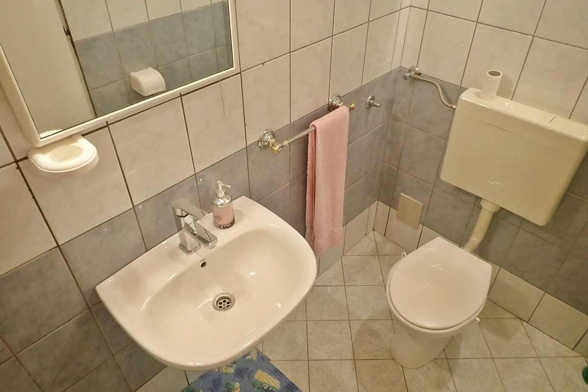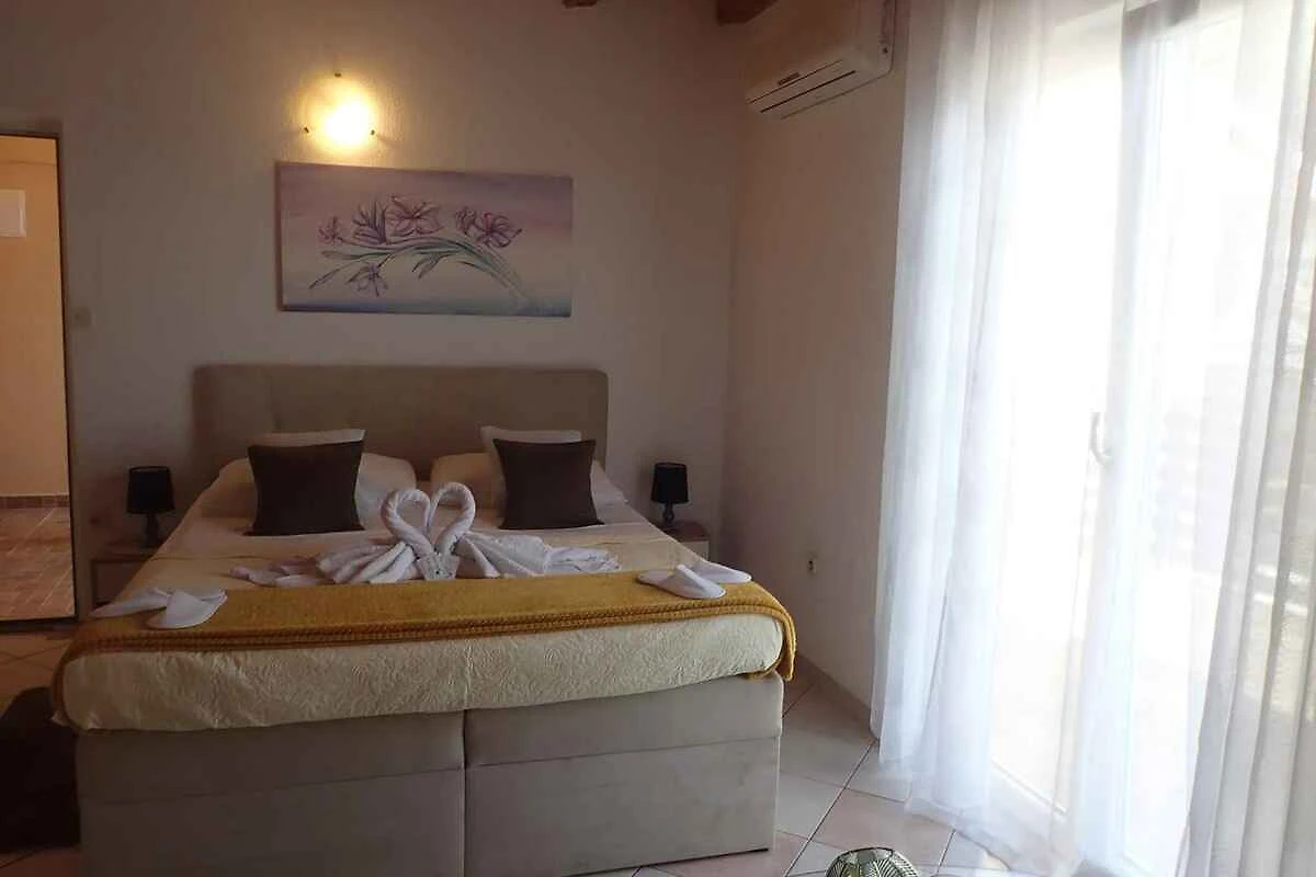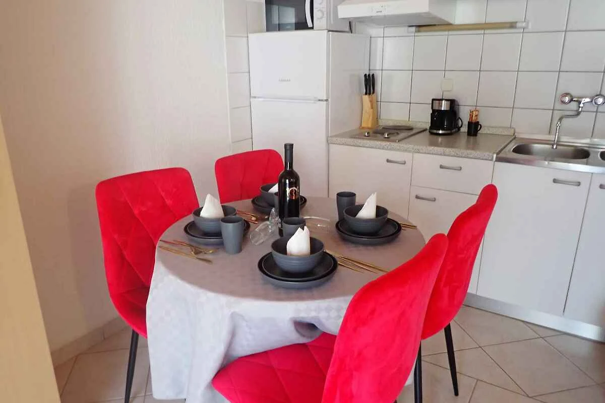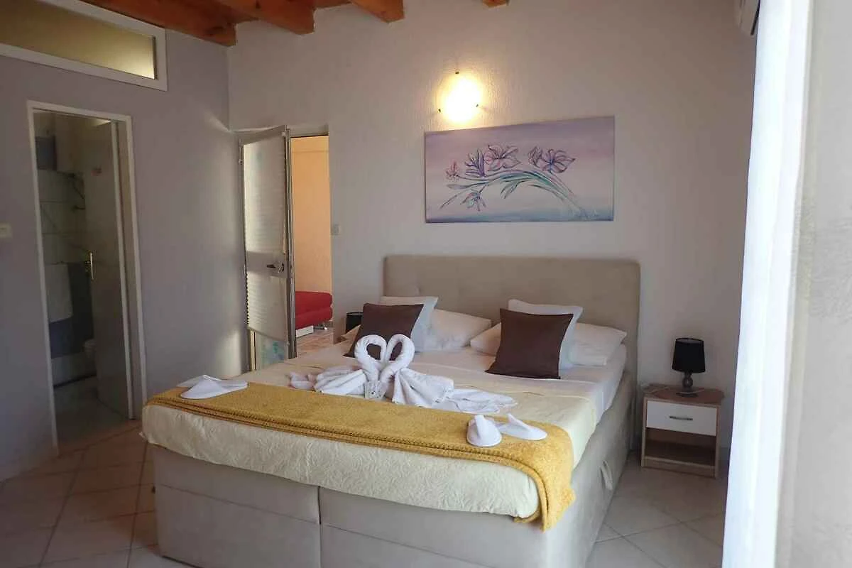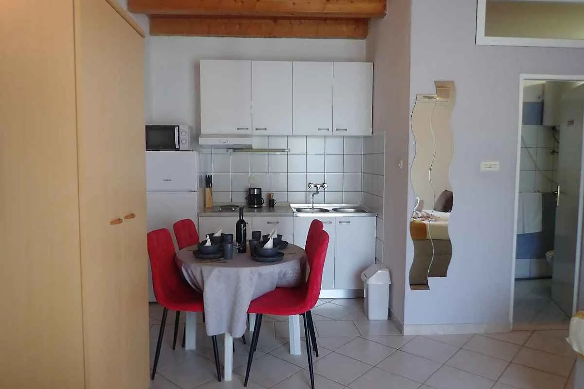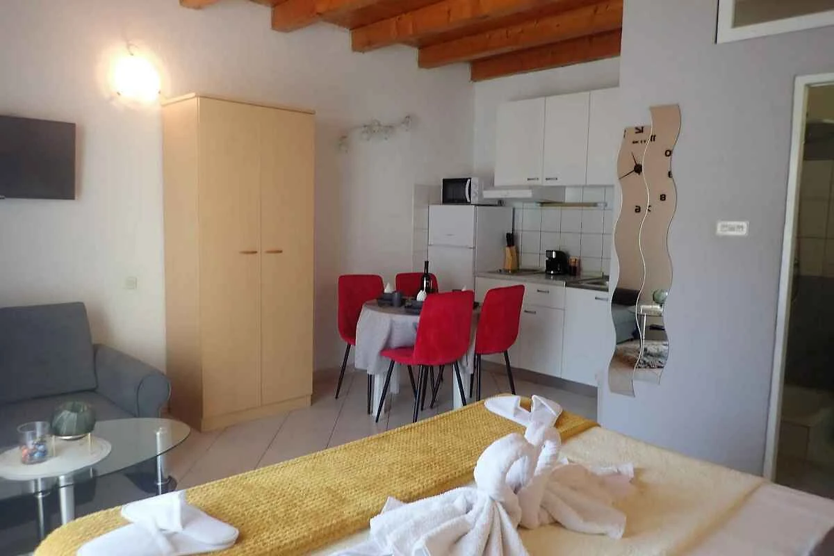 Barić Draga, Ortsteil Sveta marija Magdalena. Das Studio befindet sich auf einem 1000 qm grossen, offenen Gartengrundstück mit Blumen und Sträuchern. Der Vermieter wohnt ständig im Haus, nutzt jedoch einen separaten Eingang. Die Zufahrt erfolgt direkt von der Hauptstrasse (asphaltiert, Länge 20 m). Parkplatz (für 1 Pkw) auf dem Grundstück.