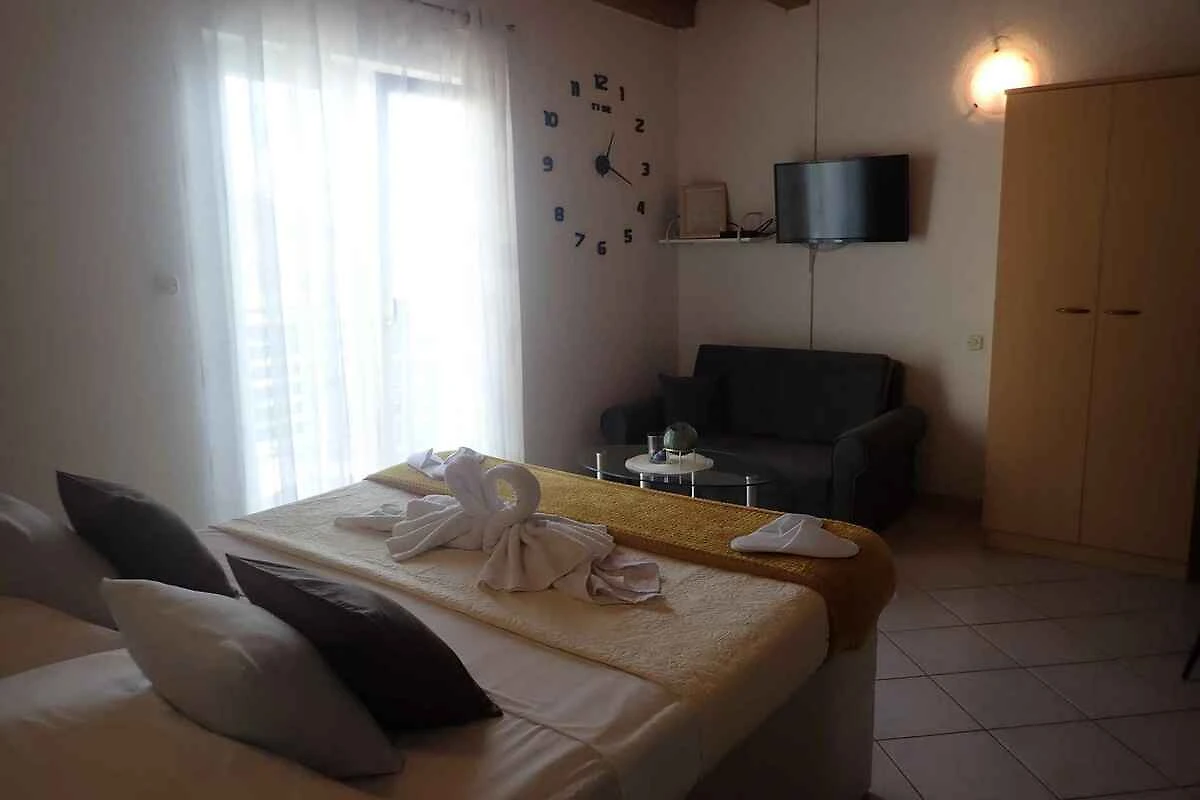 Das Studio befindet sich in einem 1989 erbauten, einzeln stehenden Einfamilienhaus, wurde im Jahr 2015 renoviert und ist zweckmässig eingerichtet. Das Grundstück liegt am Ortsrand. Auch wegen des Ausblicks vom Grundstück auf das Meer und der ruhigen und sonnigen Lage ist das Domizil beliebt. Zur Nutzung stehen zur Verfügung: Grillmöglichkeit.