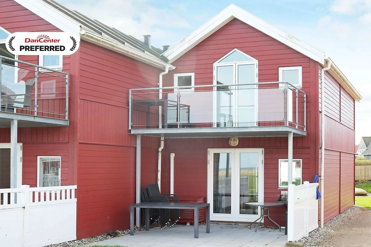 In bester Lage, direkt am besten Strand des Ortes sowie in der Nähe des Hafens von Øster Hurup und unweit aller Aktivitätsangebote, findet man diese Ferienwohnung. Sie bietet Küche, Ess- und Wohnzimmer sowie ein Badezimmer im Erdgeschoss. Dort hat man auch Zugang zu einer Terrasse mit Meerblick. Oben im Dachgeschoss findet man zwei Schlafzimmer sowie eine Galerie mit schmalerem Doppelbett. Von einem der Zimmer hat man Zugang zu einem Balkon mit Meerblick. Draußen große Gemeinschaftsflächen mit Grill- und Spielplätzen, die zum Spielen und Ballspielen einladen. Keine Vermietung an Jugendgruppen erwünscht.