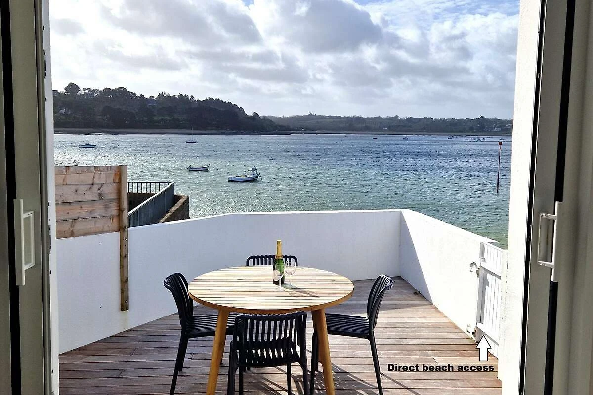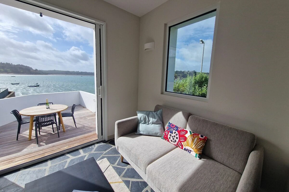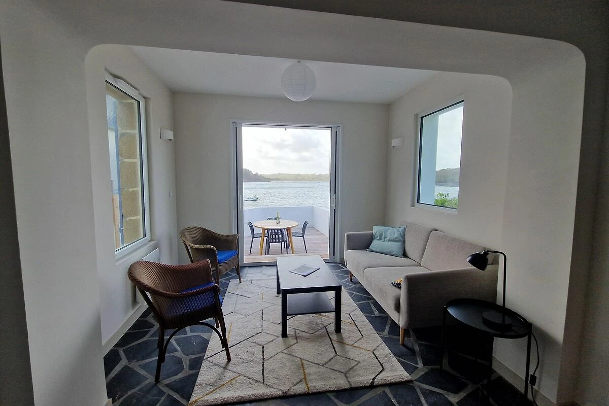 Eine Toplage und Premium-Komfort bietet dieses kleine Ferienhaus mit vorgelagerter Terrasse und fantastischem Blick aufs Meer. Für zwei Personen ist die Ausstattung mehr als komfortabel: ein geschmackvoller Wohnbereich mit Meerblick, eine gut ausgestattete Küche, ein geräumiges Schlafzimmer und zwei Bäder. Ein weiteres Plus, der private PKW-Stellplatz vor der Unterkunft. Das Meer, der malerische Hafen und eine kleine Badebucht liegen direkt vor der Tür. Besonders leckere Crêpes und Galettes werden in der nur ein paar Schritte entfernten Crêperie Les Embruns (mit Terrasse zum Meer hin) angeboten.