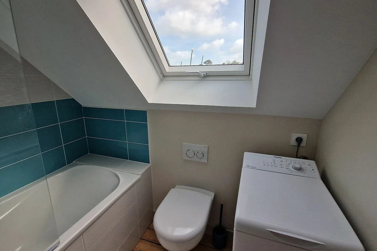 In der 1. Etage: (Schlafzimmer(Doppelbett(160 x 200 cm)), Badezimmer(Badewanne, Toilette, Waschmaschine))