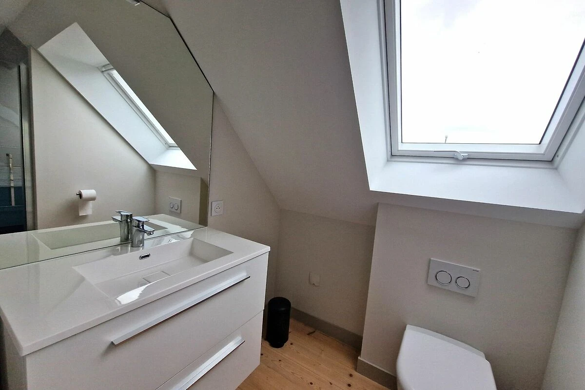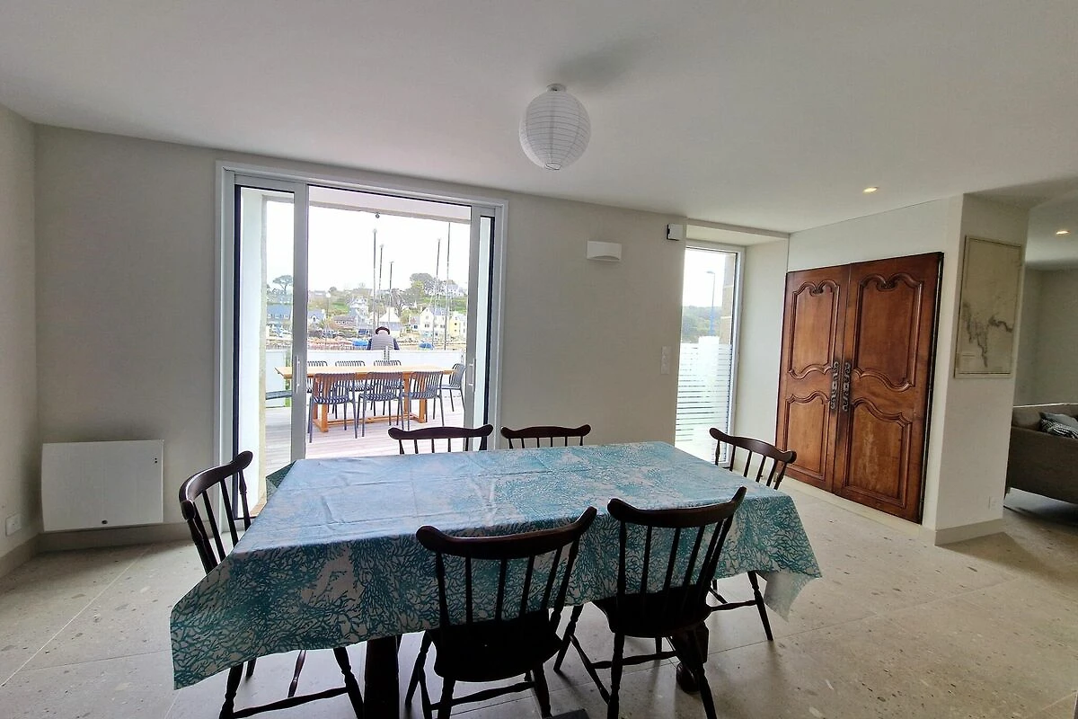Eine Toplage bietet diese charmante, am Hafen von Terenez gelegene Doppelhaushälfte. Das absolute Highlight ist die große, vorgelagerte Terrasse, mit fantastischem Blick auf den Hafen und das Meer. Die Ausstattung ist hochwertig mit einem geschmackvoll eingerichteten Wohnzimmer das vor allem in der Nebensaison mit seinem Kaminofen eine gemütliche Atmosphäre bietet, einer gut ausgestatteten Küche, drei geräumigen Schlafzimmern und zwei Bädern. Ein weiteres Plus: der private Parkplatz seitlich vom Haus. Eine kleine Badebucht befindet sich direkt vor Ihrer Haustür. Ein idealer Standort für Ihren Bretagne-Urlaub mit Baden, Wandern, Muschelsuchen und für Feinschmecker eine große Auswahl an ausgezeichneten Crêpes und Galettes, die in der nur wenige Schritte entfernten Crêperie Les Embruns angeboten werden.