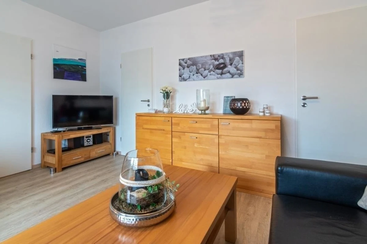 Der Wohnraum beeindruckt durch seinen harmonischen Zusammenschluss der Bereiche Küche und Wohnraum. Die offene Gestaltung und die stilvolle Einrichtung vermitteln ein Gefühl der Behaglichkeit und des Wohlfühlens. Den Mittelpunkt bildet eine komfortable Couchgarnitur, die einlädt, abends einmal die Füsse hochzulegen und einen entspannten Fernsehabend vor dem grossen TV zu geniessen. Ein Tisch steht ebenfalls bereit, um Ihre Getränke und Snacks immer in Reichweite zu haben.