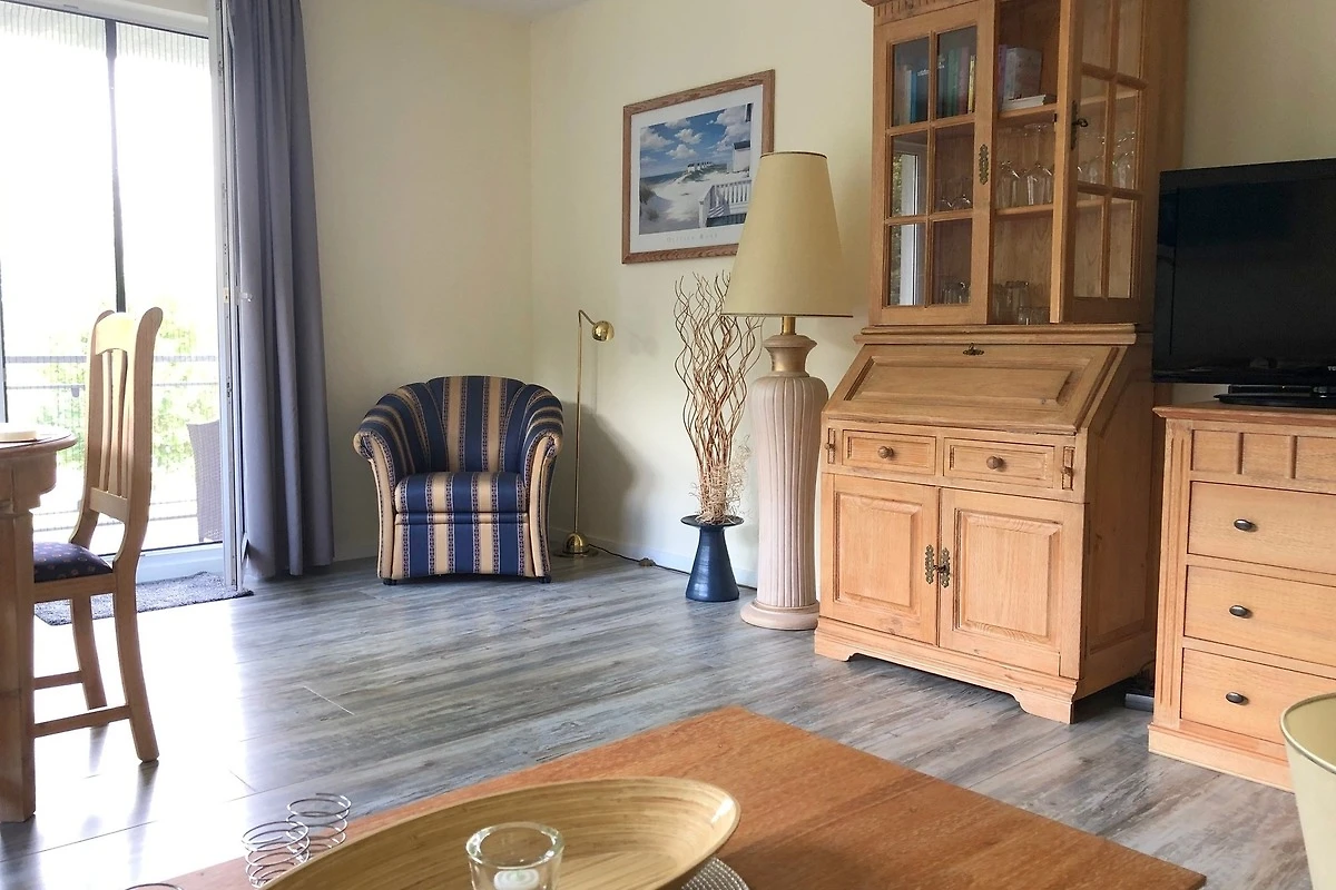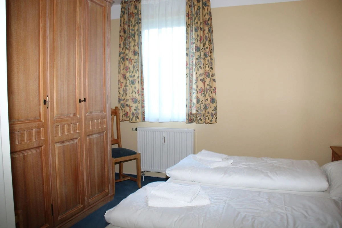 Das 53 m2 grosse Apartment liegt im 1. OG und ist mit einem Aufzug zu erreichen. Es verfügt über ein Schlafzimmer, ein Wohnzimmer mit Schlafcouch, ein Duschbad mit Fenster