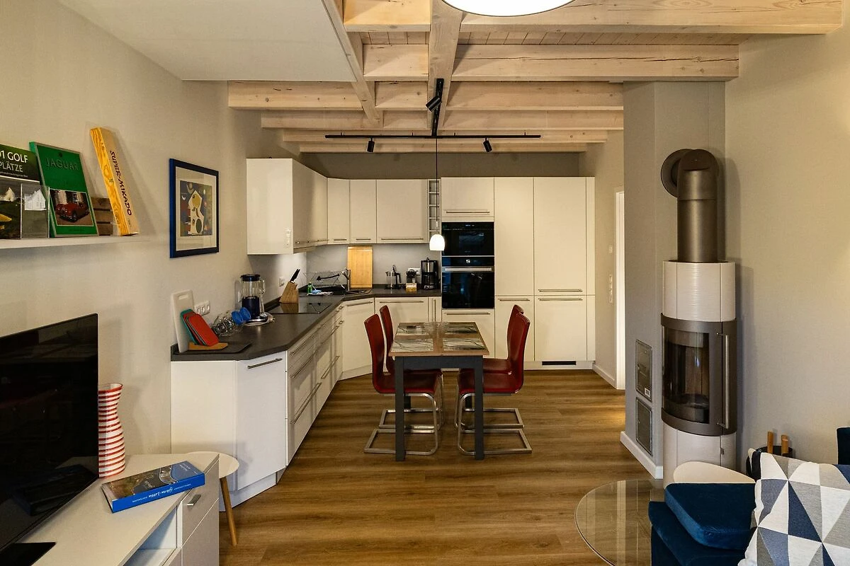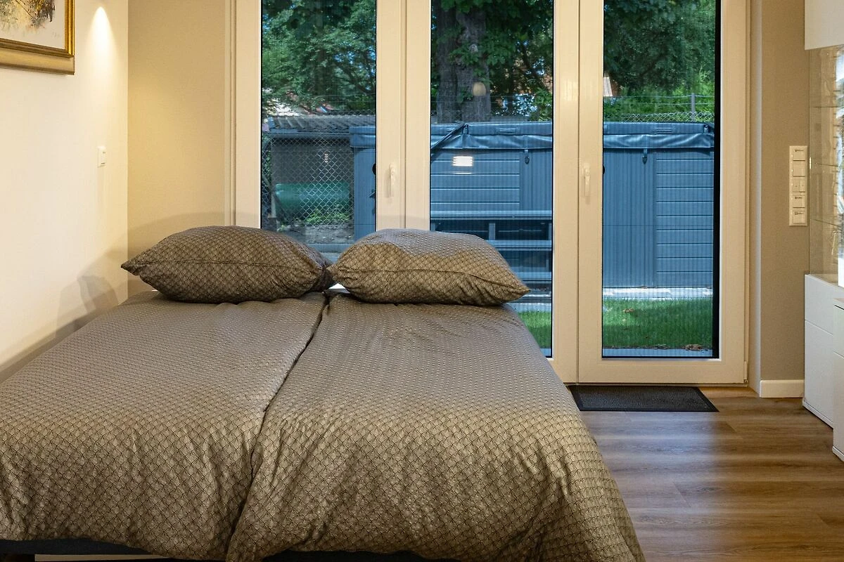 Luxus steht bei uns nicht im Namen, sondern im Garten! Sie mieten eine ruhige, 50 m² grosse Erdgeschosswohnung einer Doppelhaushälfte mit gemütlicher Ausstattung. Der Garten bietet eine 30 m² grosse Wohlfühloase mit Sauna, Dusche, Swim Spa (geteilt mit der Nachbarwohnung FleesenSeetreppe Rechts).