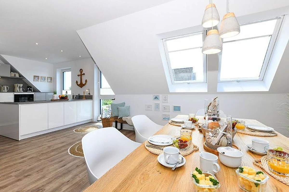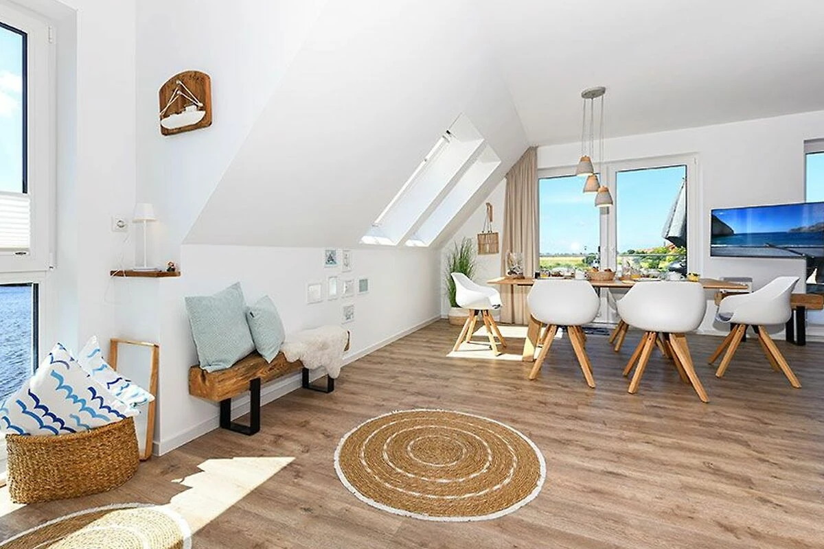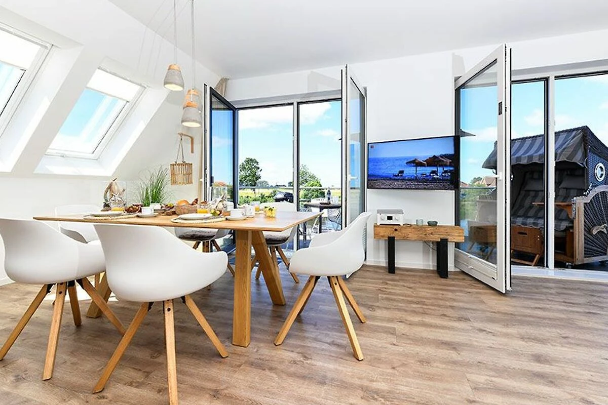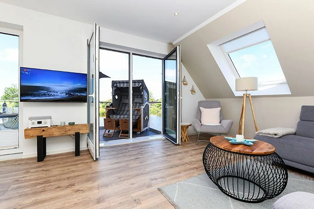 Unseren Gästen bietet sich durch die weit in die Harle hineingebaute Plattform ein einzigartiger Panoramablick von der Friedrichsschleuse bis zum Yachthafen von Harlesiel. Die beiden stilvoll eingerichteten Ferienwohnungen ebbe & flut sind jeweils für bis zu 4 Personen geeignet. Sie zeichnen sich durch ihre besonders grosszügige Raumaufteilung aus. Die Erdgeschosswohnung ebbe ist barrierefrei und bietet auf 97 m² höchsten Wohnkomfort. Nach Westen eröffnet sich eine 35 m² grosse, teilweise überdachte Terrasse. Die Wohnung flut befindet sich im oberen Geschoss und bietet den Gästen 89 m² Wohlfühlfläche. Der grosszügige, nach Westen angelegte Balkon verspricht einen einzigartigen Ausblick.