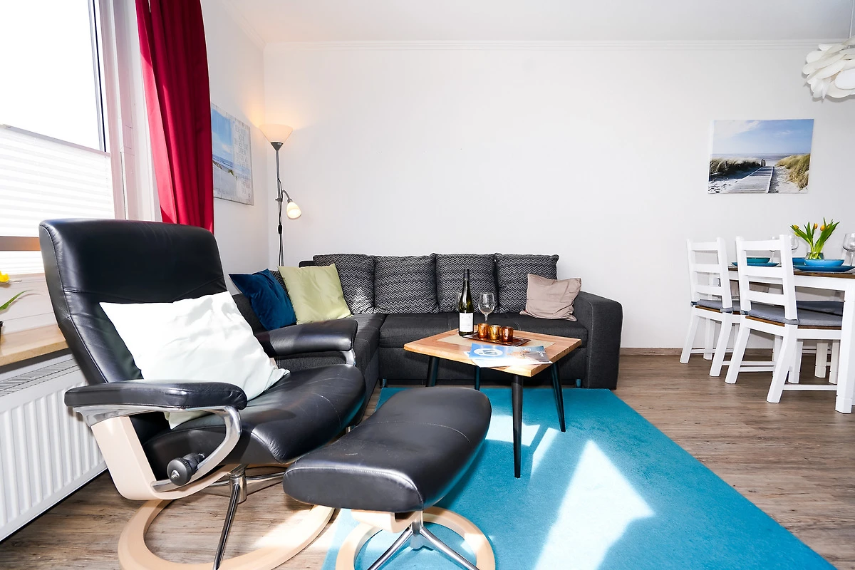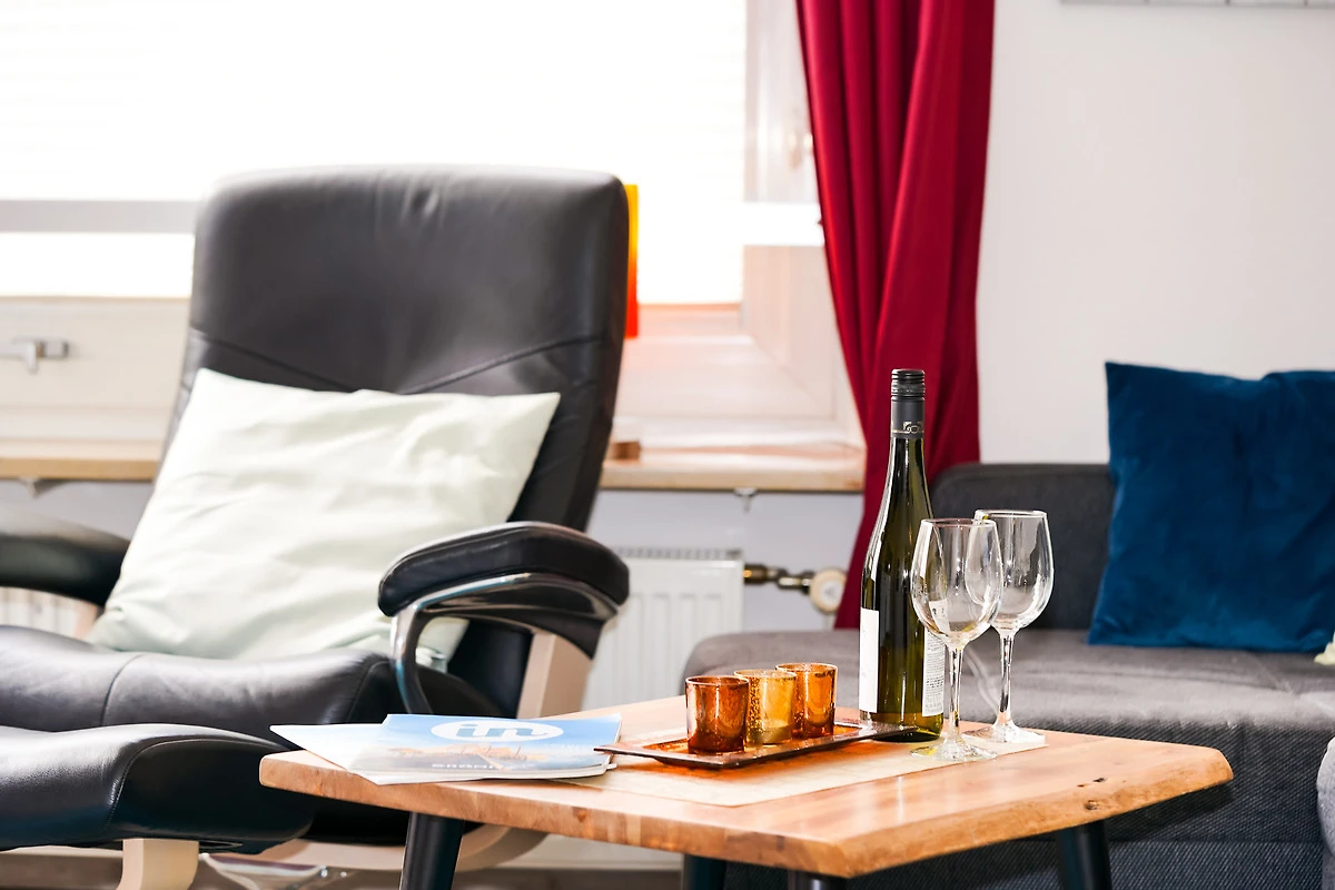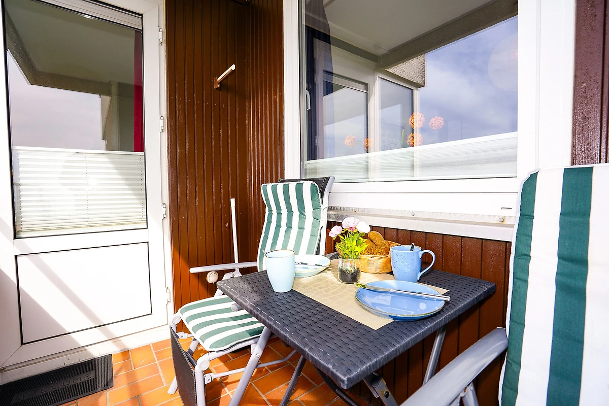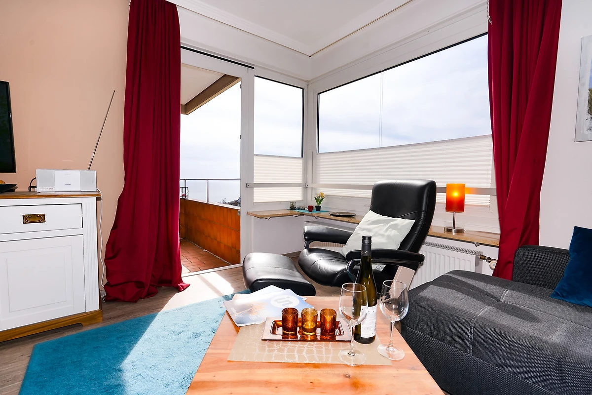 Entspannen Sie nach einem Tag am Strand auf Ihrem nach Süd-Westen ausgerichteten Balkon oder auf dem Sofa mit Blick auf die Ostsee durch die grossen Fenster.