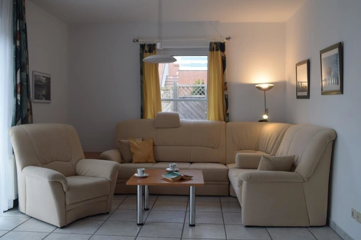 Es liegt in einer ruhigen Strasse in der Nähe des Südstrandes und des Naturschutzgebietes "Greune Stee".