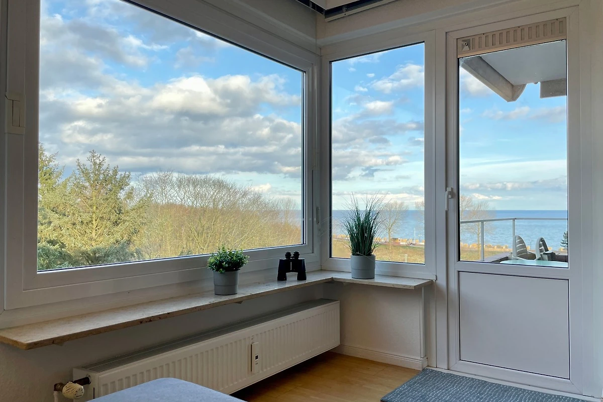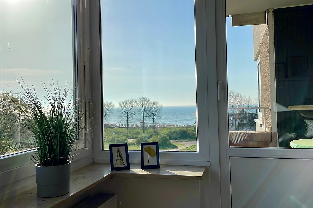 Geniessen Sie den Sonnenaufgang bereits beim Frühstück oder das Abendrot auf dem Sofa mit Panorama-Meerblick auf die Ostsee. Beobachten Sie mit dem Fernstecher die auslaufenden Schiffe. Die Unterkunft mit Meerblick bietet einen Balkon, einen kostenlosen Parkplatz, kostenfreies WLAN und einen Fahrradkeller.