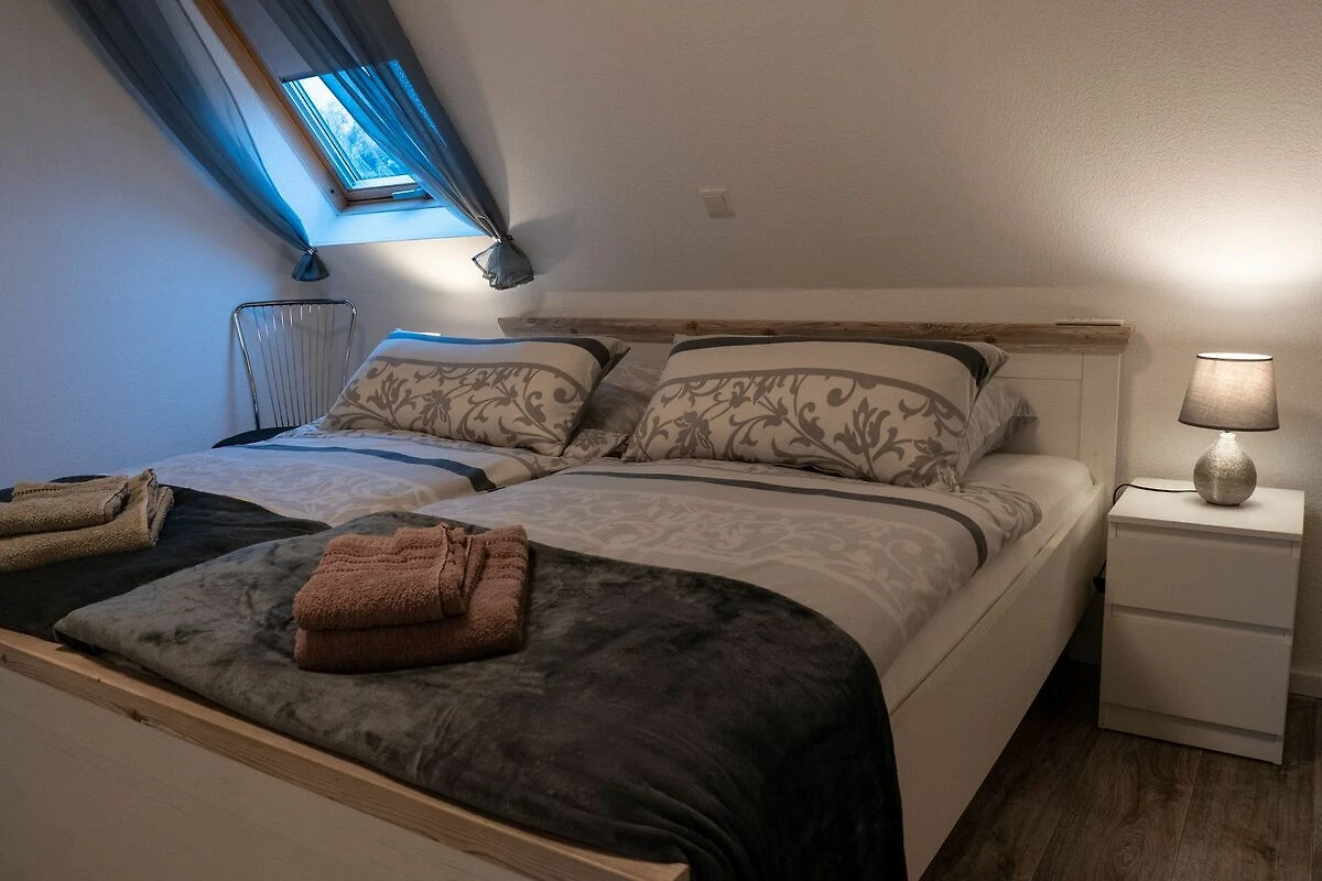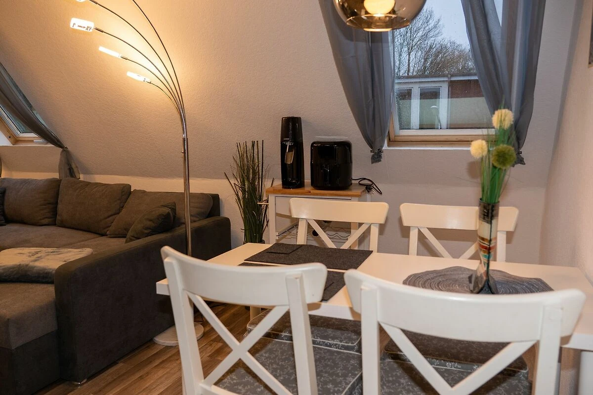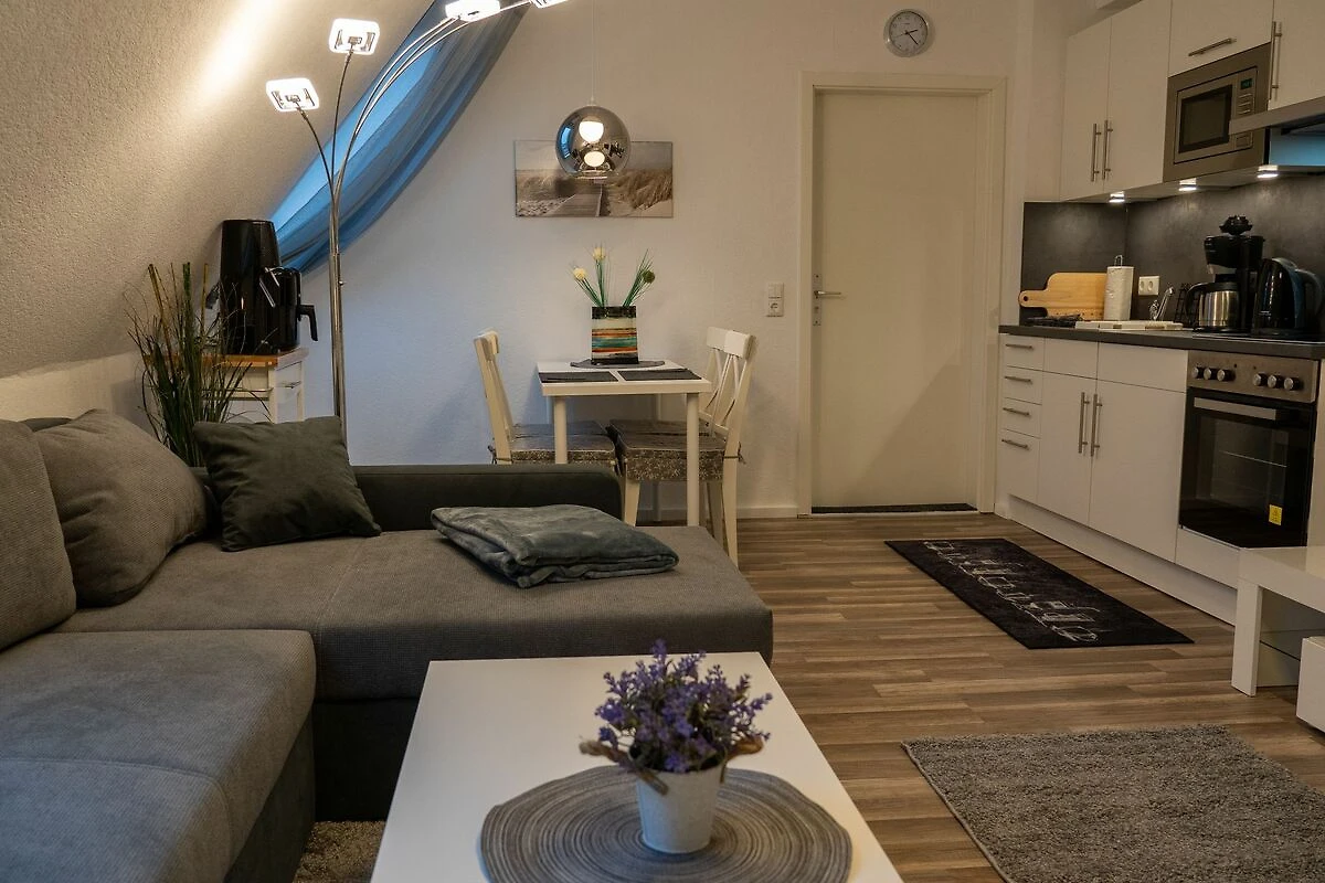 Eine moderne und gemütliche  Ferienwohnung mit einem Schlafzimmern mit Doppelbett sowie einem gemütlichen offenen Wohnraum mit integrierter Küchenzeile und Essplatz sowie ein Tageslichtbad bietet den Gästen alles, was zum erholsamen Urlaub benötigt wird. Im Wohnraum ist eine gemütliche Sitzecke untergebracht, die bei Bedarf in ein Doppelbett umfunktioniert werden kann.  WLAN und Kabel TV ist  verfügbar.