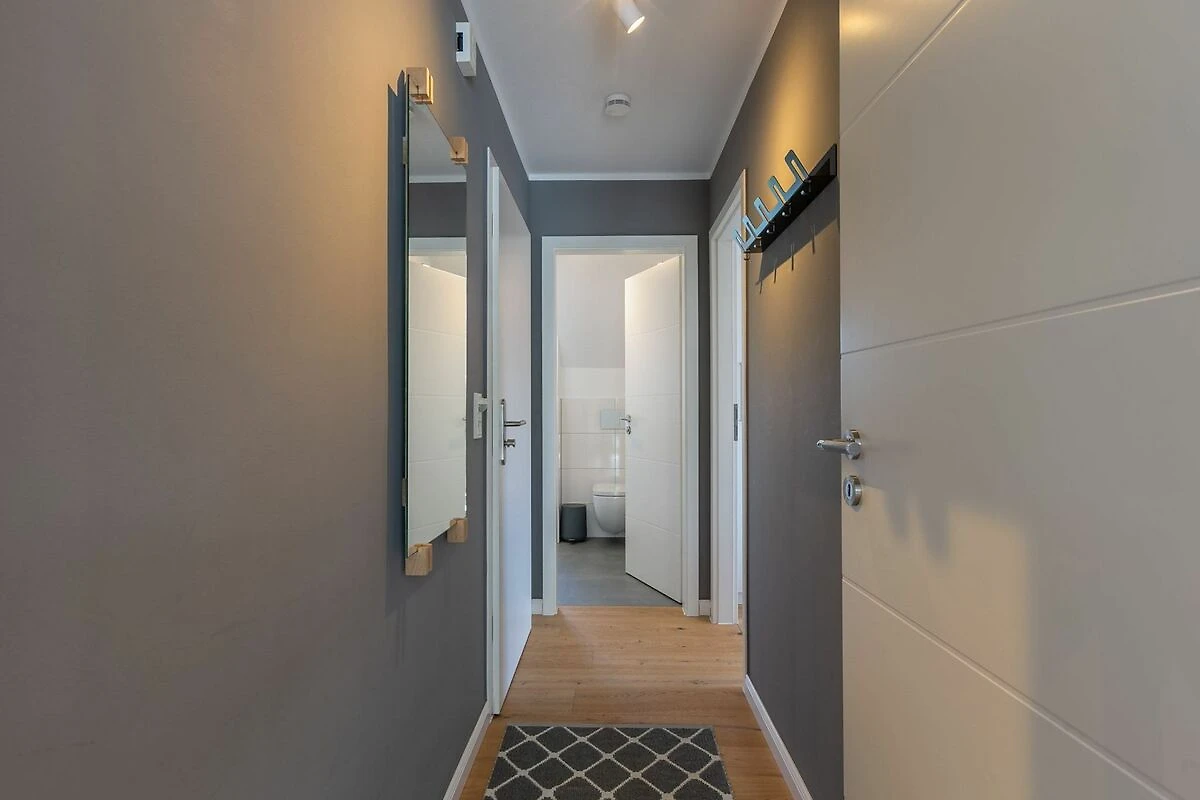 Flur mit Spiegel. Schuhablage vor dem Eingang.