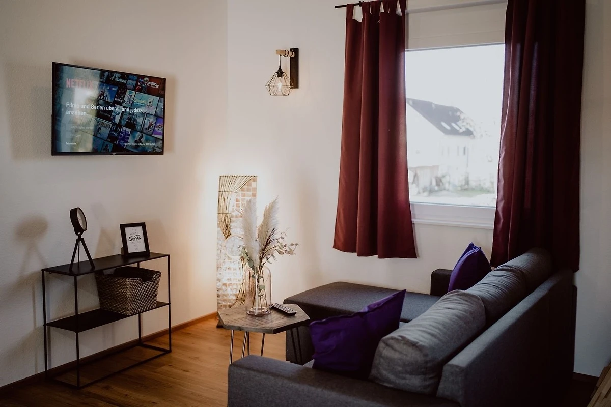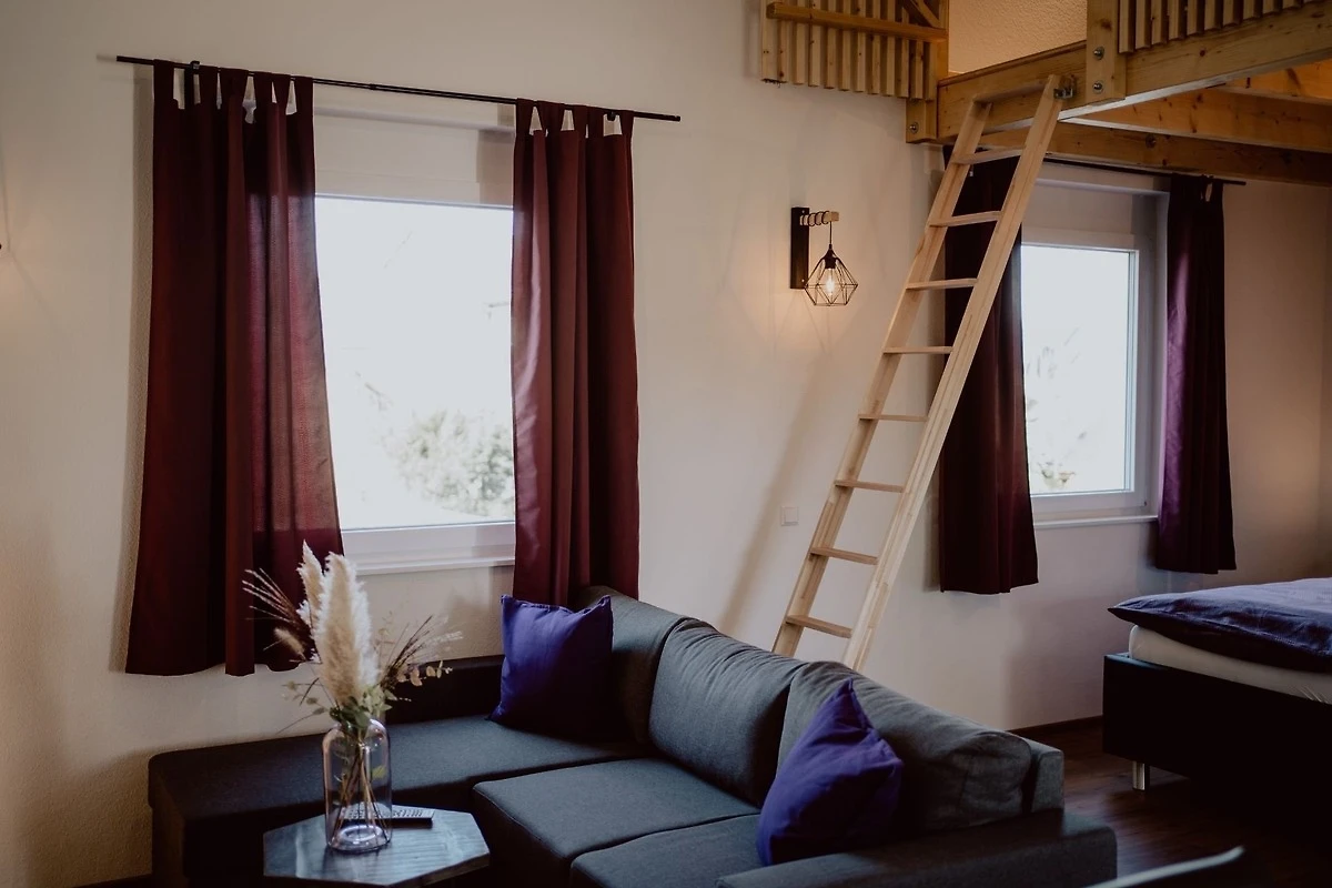 40qm, offener Wohn-Ess-und SchlafberAnkommen und Wohlfühlen in unserem neu erbauten Heim in Ortsrandlage in Weisweil am Rhein,nur 8 Fahrmin. zum Europa Park, am Rande des Kaiserstuhls und Taubergiessen.15 km zur Autobahn, Bushaltestelle nur 300m entfernt.Ca. 60 Fahrmin. zum Feldberg.Die Wohnung befindet sich im 1. Obergeschoss, neben unseren beiden anderen neu erbauten komfortablen Wohnungen. Diese Unterkunft besteht aus einem offenen Raum mit 40qm Wohnfläche, der sich in Schlaf-, Wohn- und Küchenbereich gliedert, sowie einer offenen Schlafempore mit Leiteraufgang.Küche, Kühlschrank mit Gefrierfach, Toaster, Wasserkocher, Cerankochfeld, Backofen, Fön, Schlafcouch, 2 Doppelbetten, LAN, WLAN, SAT-TV, Netflix, Waschmaschine, Trockner, Parkplatz, überdachter Balkon.