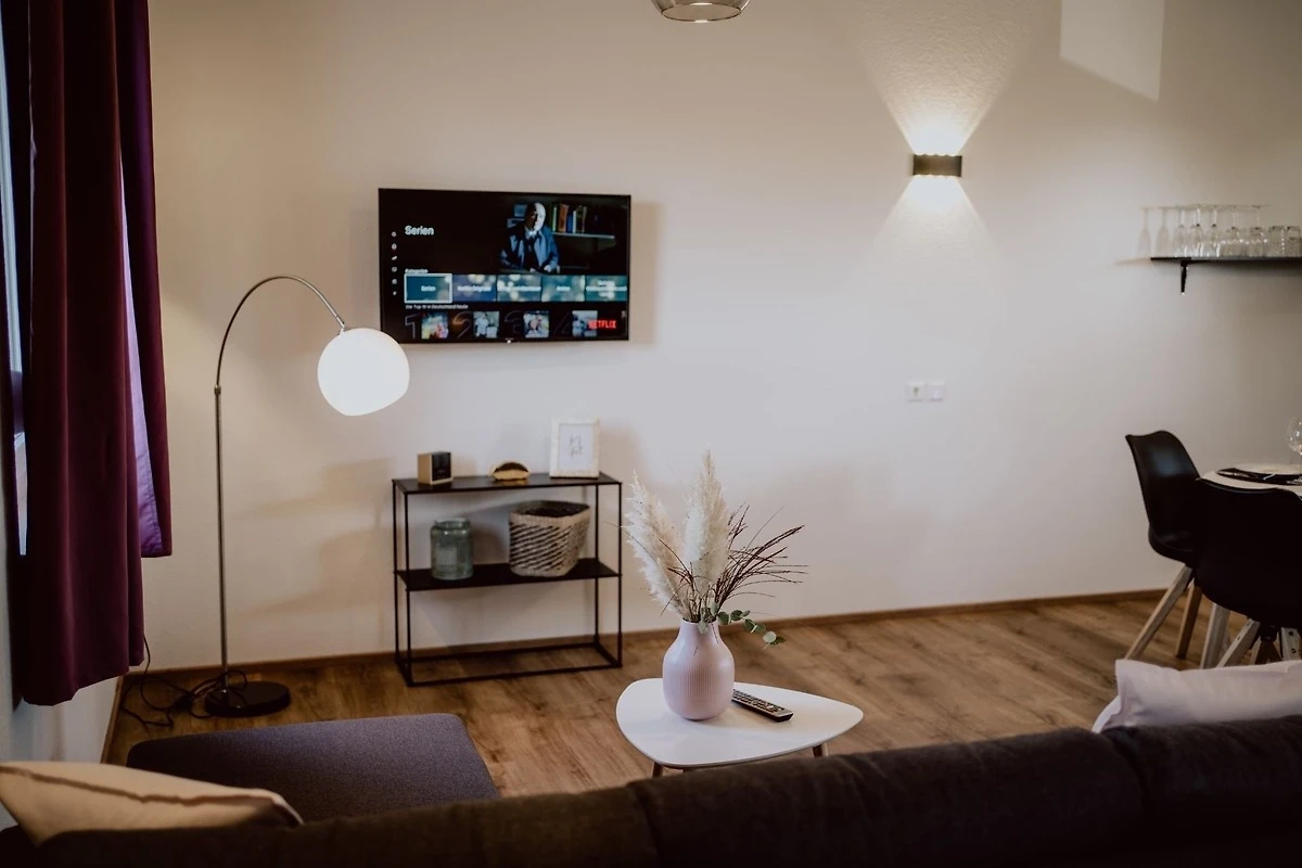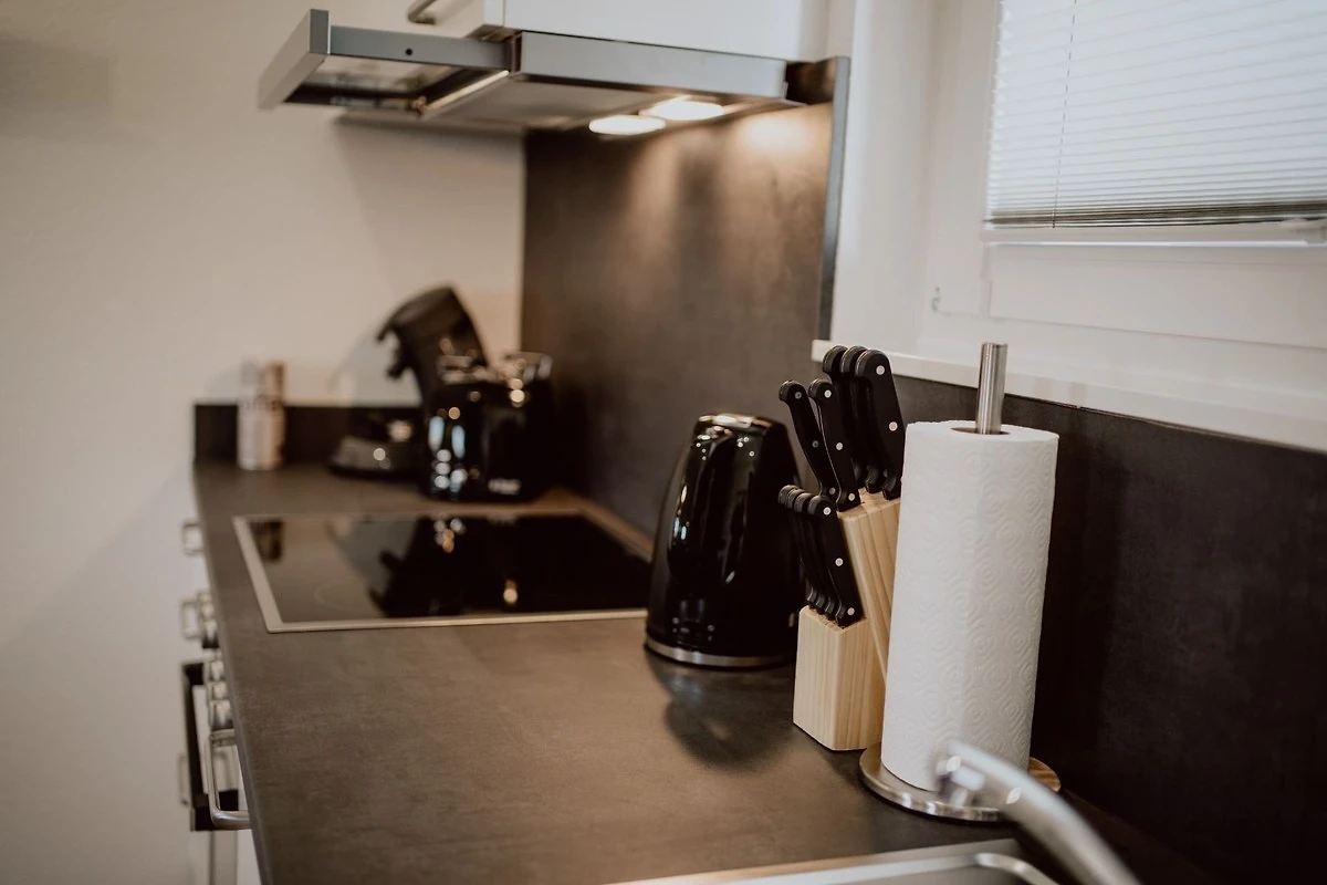 Ankommen und Wohlfühlen in unserem neu erbauten Heim in Ortsrandlage in Weisweil am Rhein,nur 8 Fahrmin. zum Europa Park, am Rande des Kaiserstuhls und Taubergiessen.15 km zur Autobahn, Bushaltestelle nur 300m entfernt.Ca. 60 Fahrmin. zum Feldberg.Die Wohnung befindet sich im 1. Obergeschoss, neben unseren beiden anderen neu erbauten komfortablen Wohnungen. Diese Unterkunft besteht aus einem offenen Raum mit 40qm Wohnfläche, der sich in Schlaf-, Wohn- und Küchenbereich gliedert.40qm, offener Wohn-Ess-und Schlafbereich,Küche, Kühlschrank mit Gefrierfach, Toaster, Wasserkocher, Cerankochfeld, Backofen, Fön, Schlafcouch, 1 Doppelbett, LAN, WLAN, SAT-TV, Netflix, Waschmaschine, Trockner, Parkplatz, überdachter Balkon.