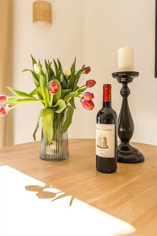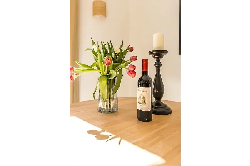 Die Wohnung ist geschmackvoll eingerichtet und verfügt über ein gemütliches Schlafzimmer mit einem bequemen Doppelbett, eine bequeme Couch und eine helle Küche mit einem Esstisch, die auch für das Homeoffice geeignet ist. Die moderne Küche ist komplett mit allem ausgestattet, was man braucht, um seine Mahlzeiten zuzubereiten. Das Bad ist neu und verfügt über eine Dusche.