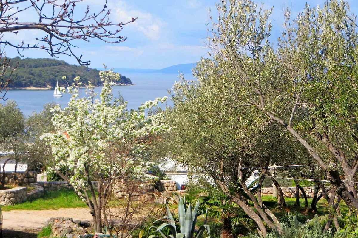 Cres. Die Ferienwohnung befindet sich auf einem Gartengrundstück mit Wiese, Sträuchern und Bäumen. Der Vermieter wohnt ständig in einem separaten Gebäude auf dem Grundstück.