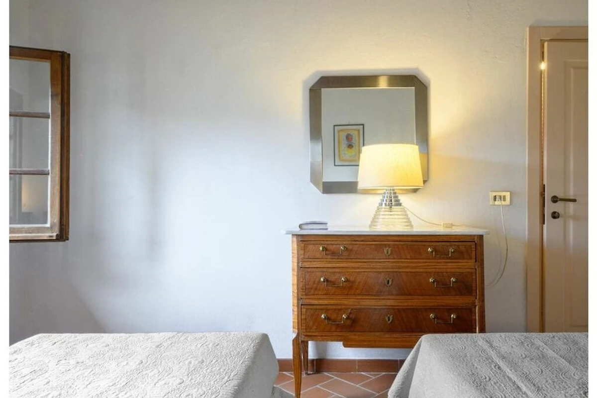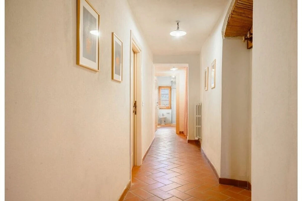 Es bietet Platz für bis zu 9 Personen, hat 5 Schlafzimmer und 3 Bäder.
