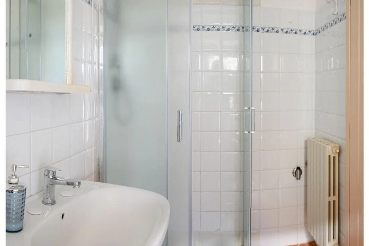 Der Schlafbereich besteht aus 3 Doppelschlafzimmern, 1 Einzelzimmer und 1 Zweibettzimmer. Schließlich gibt es noch drei Badezimmer mit Dusche.