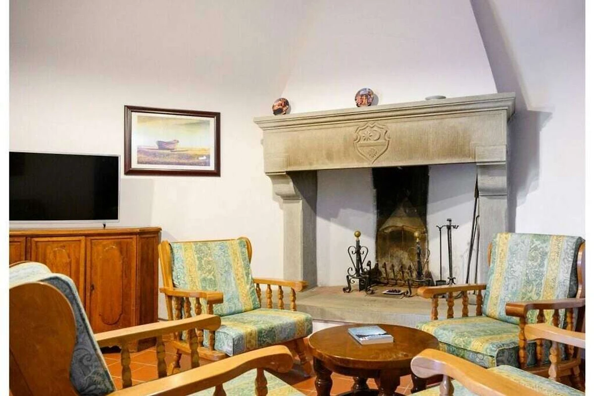 Die Gäste werden von einem hellen, offenen Wohnbereich empfangen, der mit Sofa, Sesseln, Fernseher, Kamin und Esstisch ausgestattet ist. Es folgt eine schöne Küche mit Herd, Backofen, Kühlschrank, Geschirrspüler, Toaster, Kaffeemaschine und Esstisch für 8 Personen.