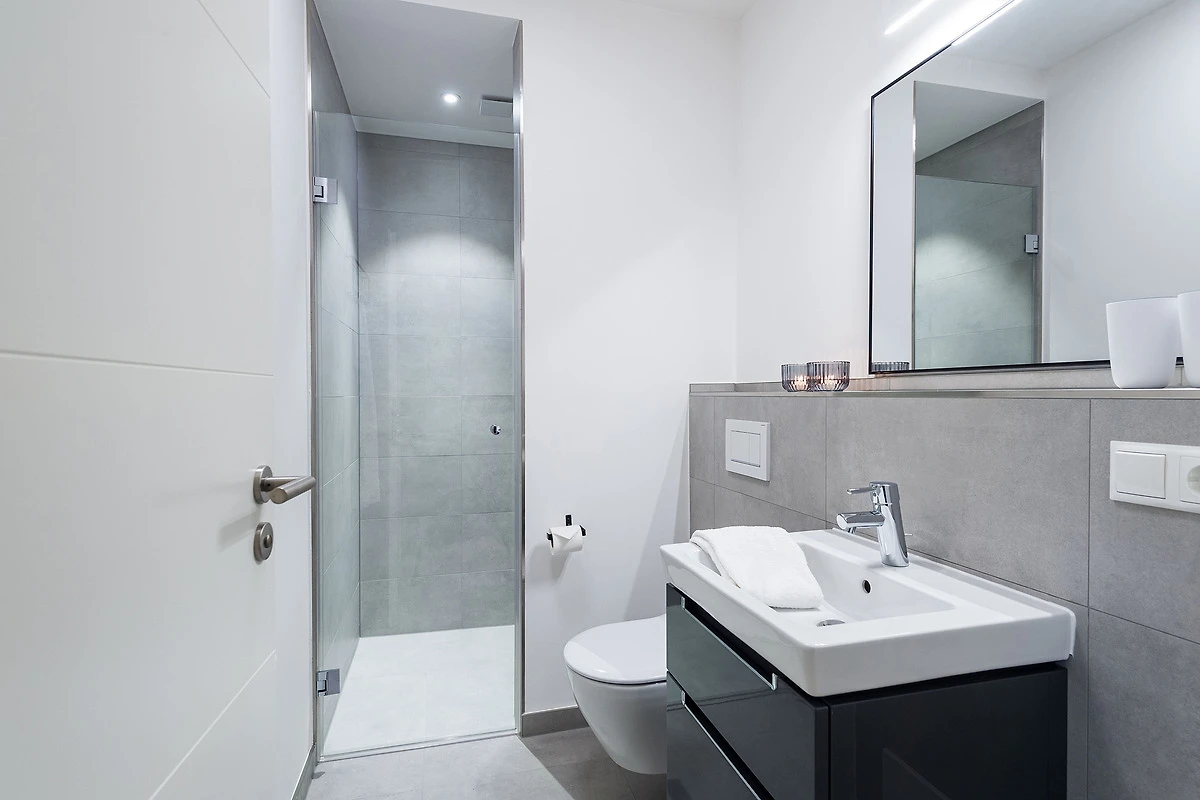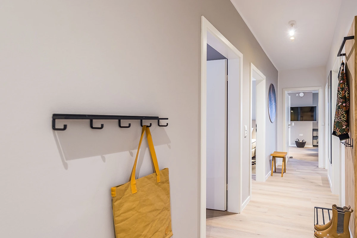 Kühlschrank inkl. Gefrierfach, eine Mikrowelle sowie einen Waschtrockner. Im Wohnbereich erwartet Sie ein 50-Zoll-Smart-TV sowie der Zugang zum Balkon. Der Balkon ist ebenfalls mit einem Esstisch ausgestattet und bietet einen herrlichen, frontalen Blick auf die Ostsee. Selbstverständlich bieten wir schnelles und kostenfreies WLAN sowie einen PKW-Stellplatz direkt am Haus. Auf den hauseigenen Parkplätzen stehen Ihnen E-Auto-Ladegeräte (Wallboxen) zur Verfügung (gegen Gebühr). Aufgrund der Allergiker gerechten Ausstattung sind Haustiere nicht erlaubt.