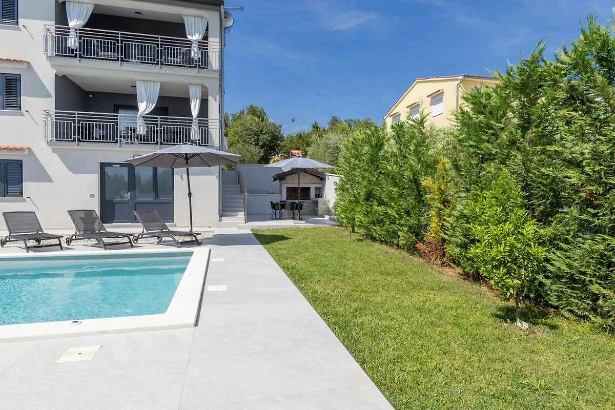Einkauf 3 km, Restaurant 500 m, Ortszentrum 3 km. Flughafen in Pula 40 km. Geldautomat 5km, Marktplatz 7km (Porec), Busbahnhof 10 km. Im Sommer: Bademöglichkeit (Strand 5 km in Zelena Laguna).