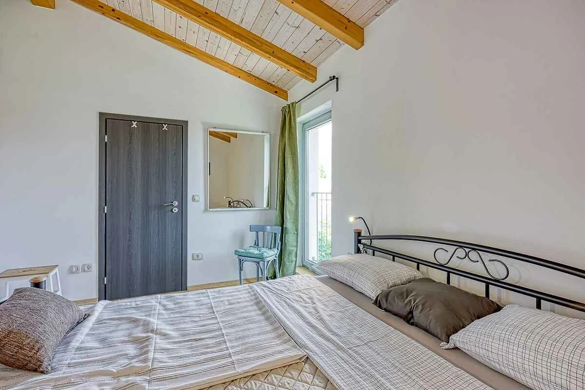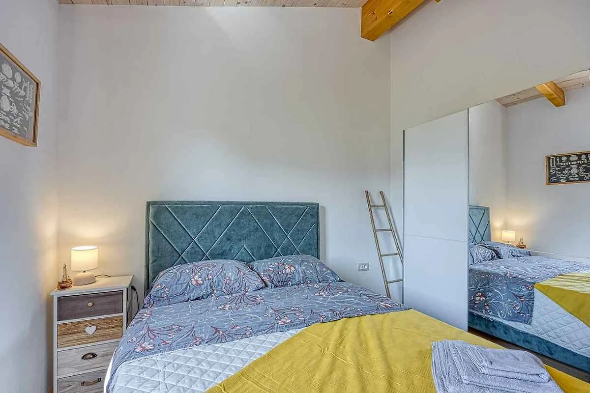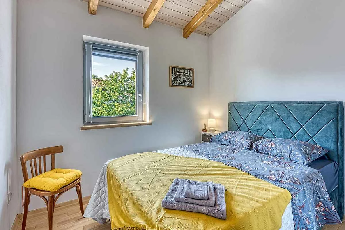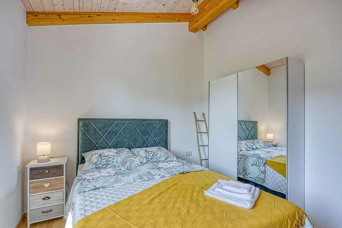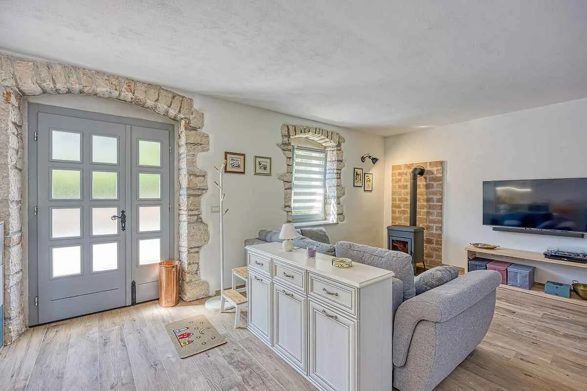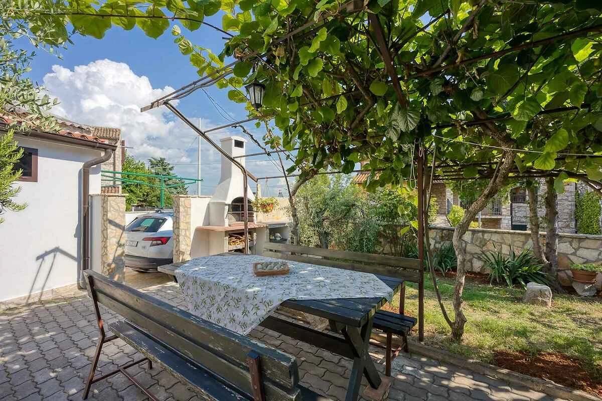 Vabriga. Das Ferienhaus befindet sich auf einem geschlossenen Gartengrundstück mit Sträuchern und Bäumen, von einem Zaun begrenzt. Die Zufahrt erfolgt direkt von der Hauptstrasse (asphaltiert). Parkplatz (für 2 Pkws) auf dem Grundstück.