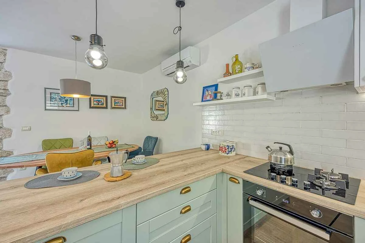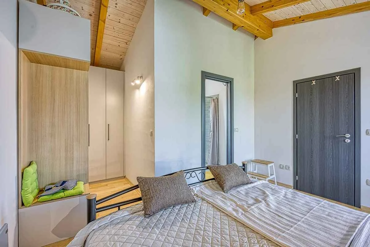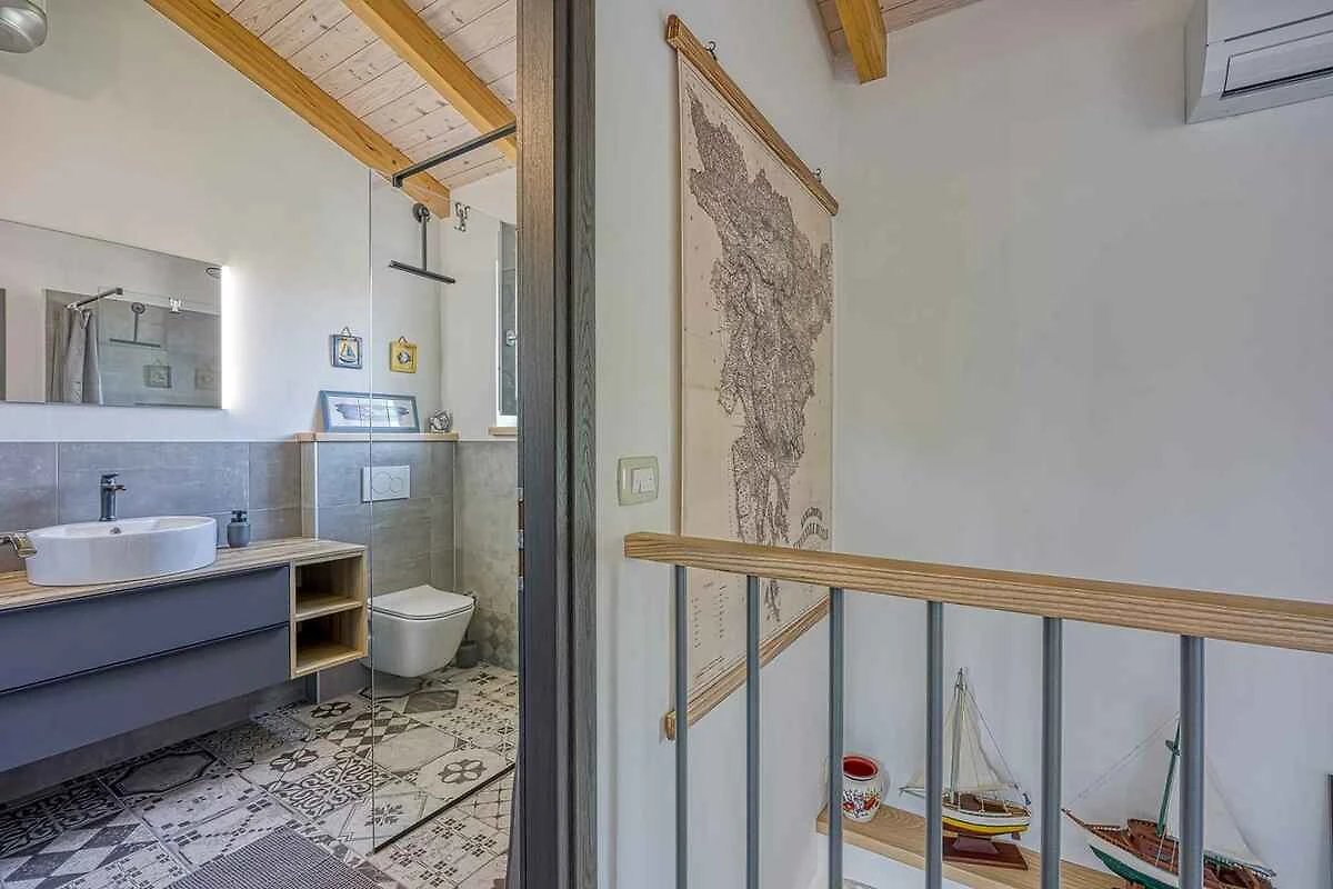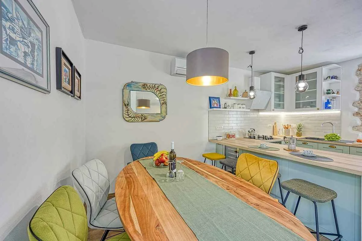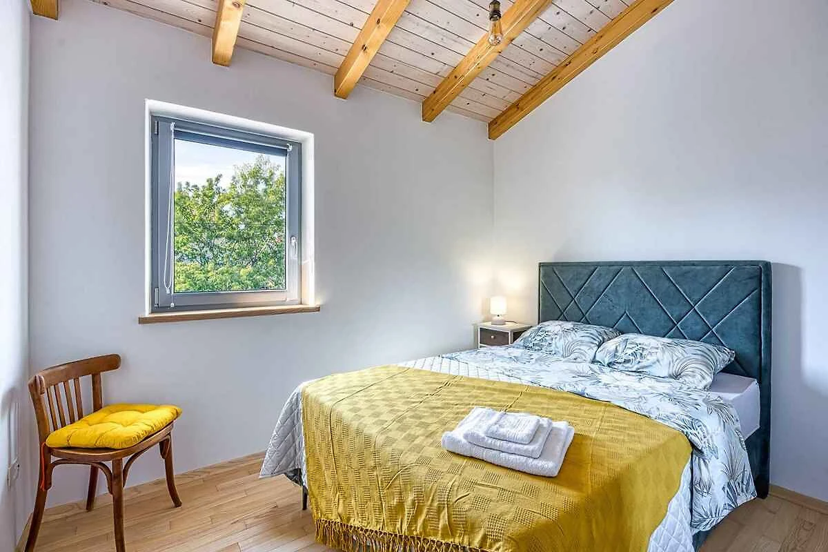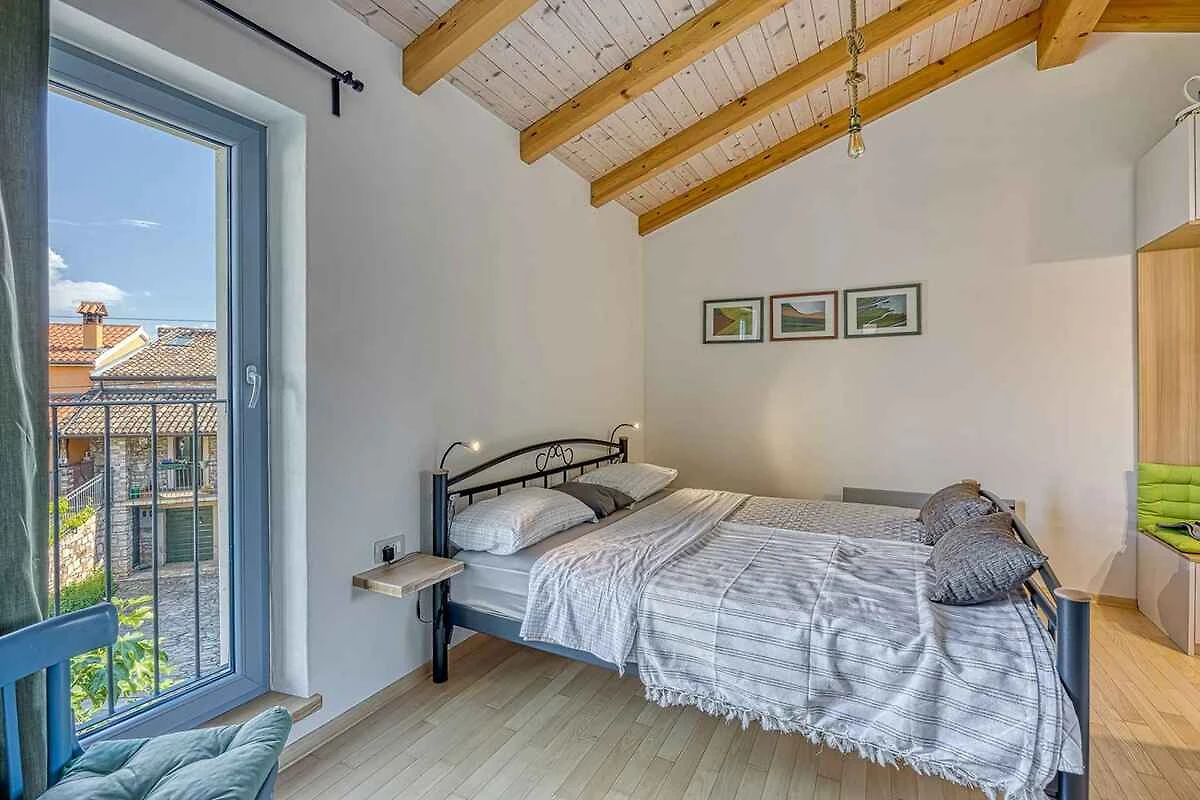 Vabriga. Das Ferienhaus befindet sich auf einem geschlossenen Gartengrundstück mit Sträuchern und Bäumen, von einem Zaun begrenzt. Die Zufahrt erfolgt direkt von der Hauptstrasse (asphaltiert). Parkplatz (für 2 Pkws) auf dem Grundstück.