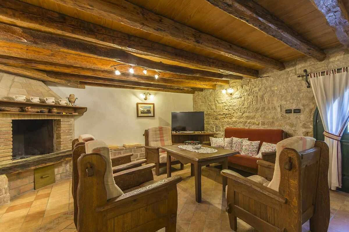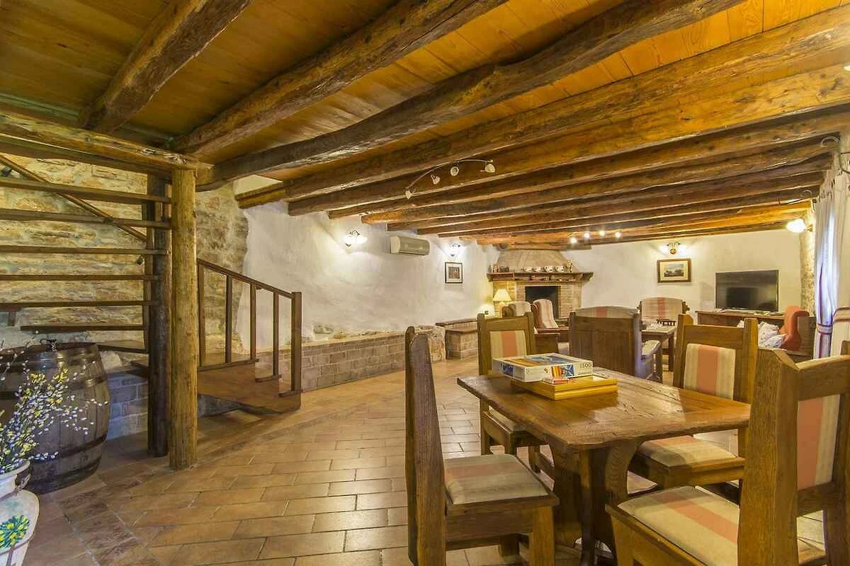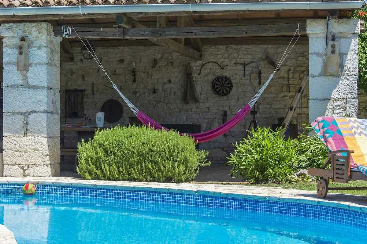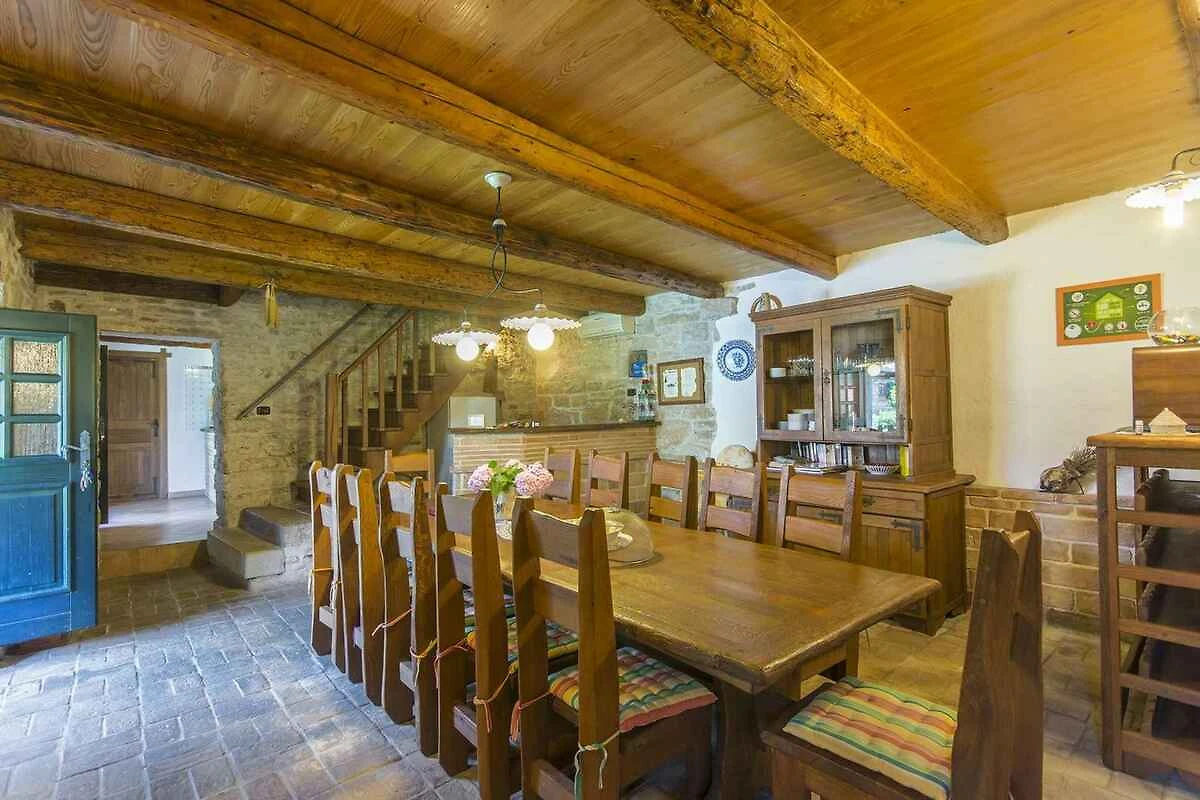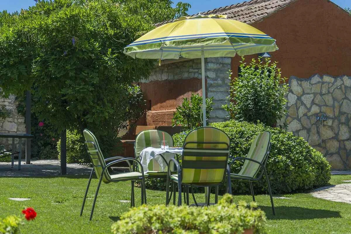 Kanfanar. Die Villa befindet sich auf einem Gartengrundstück mit Wiese, Sträuchern und Bäumen. Das Haus verfügt über ein komplett geschlossenes Grundstück von 470 qm, auf dem den Gästen ein 36 qm grosser Swimmingpool, eine grosse überdachte Terrasse mit Sitzgarnitur und Grillkamin, zwei Aussenduschen, eine gepflegte Rasenfläche. Zwei Parkplätze ausserhalb des Grundstücks zur Verfügung stehen.