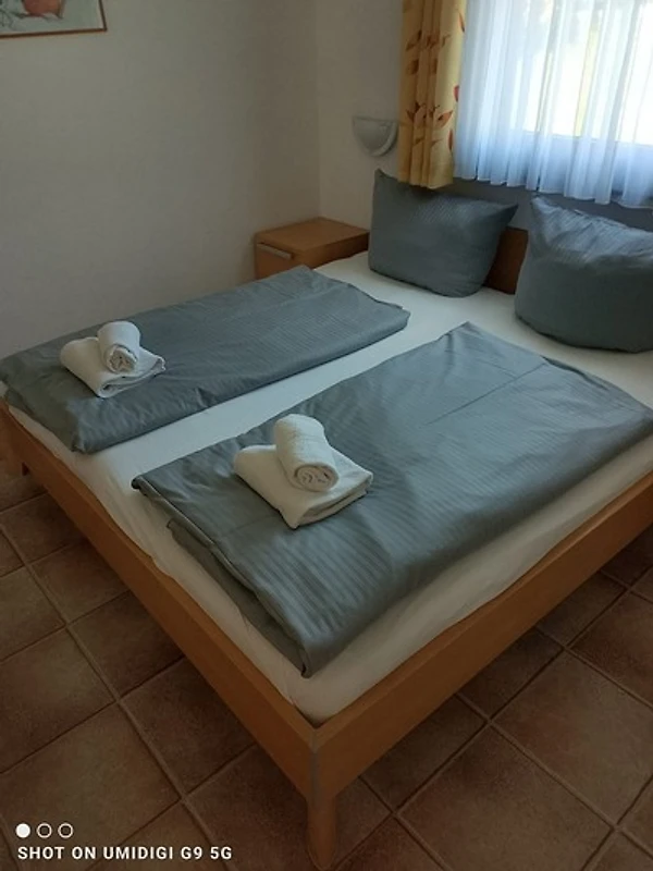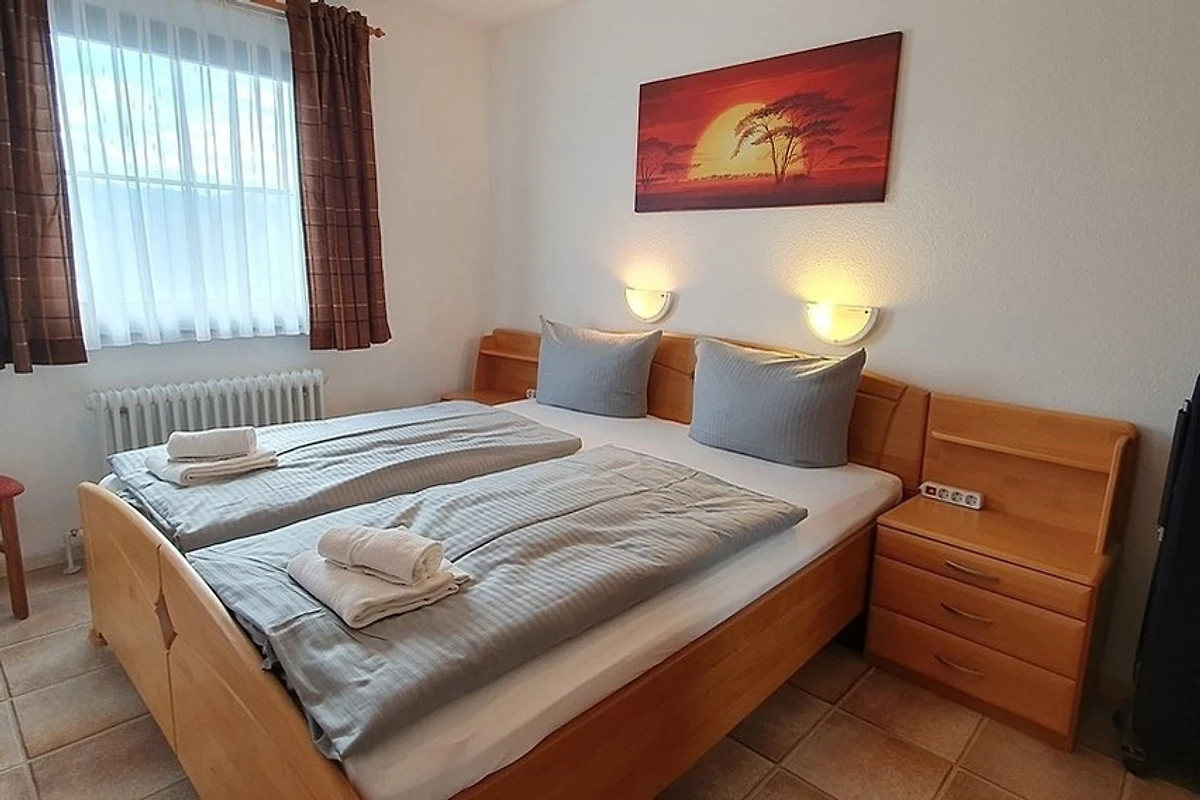 Die 2 Schlafzimmer haben je ein Doppelbett sowie einen Kleiderschrank (Kinderbett ist vorhanden), zusätzlich gibt es im Haus für die 5. Person ein Beistellbett (80x190cm).