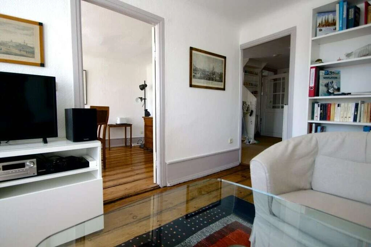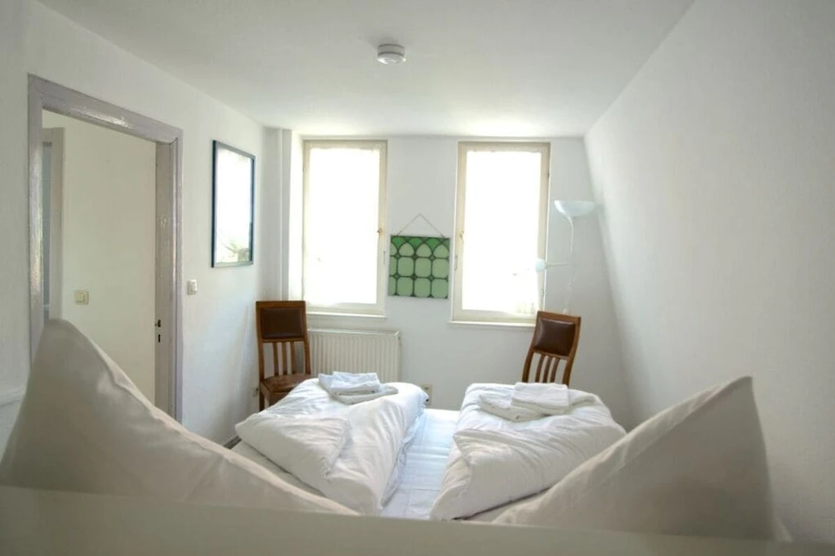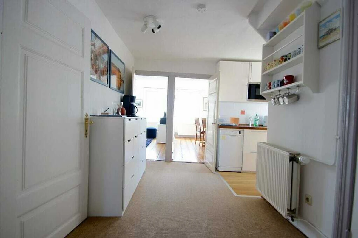 Sie betreten die Wohnung über einen hellen Flur. Linker Hand befindet sich das moderne in weiß gehaltene Badezimmer und das Schlafzimmer – hell und modern mit hochwertigem Bett und Blick auf den schönen Innenhof! Geradeaus gelangen Sie in den großzügigen Wohn- und Essbereich mit angrenzender offener Küche und Holztreppe zum Schlafzimmer im Spitzboden. Die gesamte Wohnung ist mit hochwertigem Teppich und Fliesen ausgestattet, sowie im Wohn- und Esszimmer mit altem Dielenboden und bietet durch das Fachwerk ein besonderes Wohnumfeld. Die wunderschöne Wohnung ist vollständig renoviert und liebevoll eingerichtet worden. Die Einrichtung ist exklusiv: 32- Flat-TV im Wohnzimmer,32-Zoll-LCD-TV als Zweitfernseher im oberen Schlafzimmer und Designermöbel. Die offene Küche ist mit neuster Technik sowie Geschirrspüler, Ceran-Kochfeld, Umluftbackofen, Mikrowelle, PixiNespresso Kaffeemaschine, Wasserkocher, Toaster, Waffeleisen, Mixer, Saftpresse, Gewürzauswahl etc. ausgestattet. Von fast allen Räumen haben Sie einen wunderbaren Blick auf die schöne Trave. Des Weiteren befindet sich im Innenhof eine voll ausgestattete Terrasse, die zum Verweilen und Träumen einlädt. Die Ferienwohnung bietet einen Dauerstrandkorb bei der Strandkorbvermietung Knoll am Sandstrand von Travemünde, der kostenlos für Sie reserviert ist.
