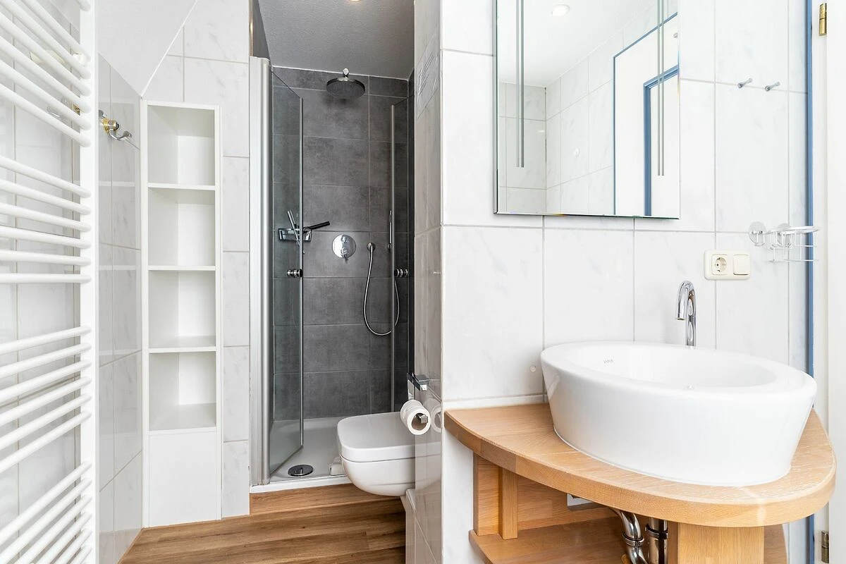 Treten Sie hinaus auf Ihre persönliche und möblierte Gartenterrasse, wo Sie in Ruhe die frische Luft und die Stille genießen können. Und keine Sorge für Allergiker, denn das Apartment ist auch für Sie geeignet.