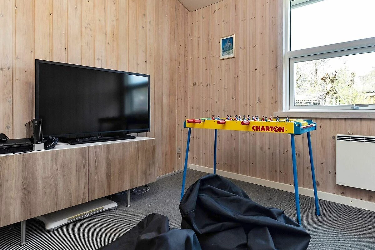 Küche(Kochherd(elektrisch), Kaffeemaschine, Mikrowelle, Tiefkühlschrank(1-59L), Kühl-/Gefrierkombination, Hochstuhl), Wohn-/Schlafzimmer(TV(Deutsch Fernsehsender, dänische Fernsehsender, norwegische Fernsehsender, schwedische Fernsehsender)), Schlafzimmer(Doppelbett), Schlafzimmer(Doppelbett), Schlafzimmer(2x Einzelbett), Schlafzimmer, Badezimmer(Trockner, Waschbecken, Dusche, Toilette, Waschmaschine), Badezimmer(Waschbecken, Dusche, Toilette), Spielkonsole, Whirlwanne(im Innenbereich, erwärmt, 2 Personen), Heizung(elektrisch), Terrasse, Garten, Gartenmöbel, Liegen, Spielgeräte, Tischfußball, Luft-Luft-Wärmepumpe