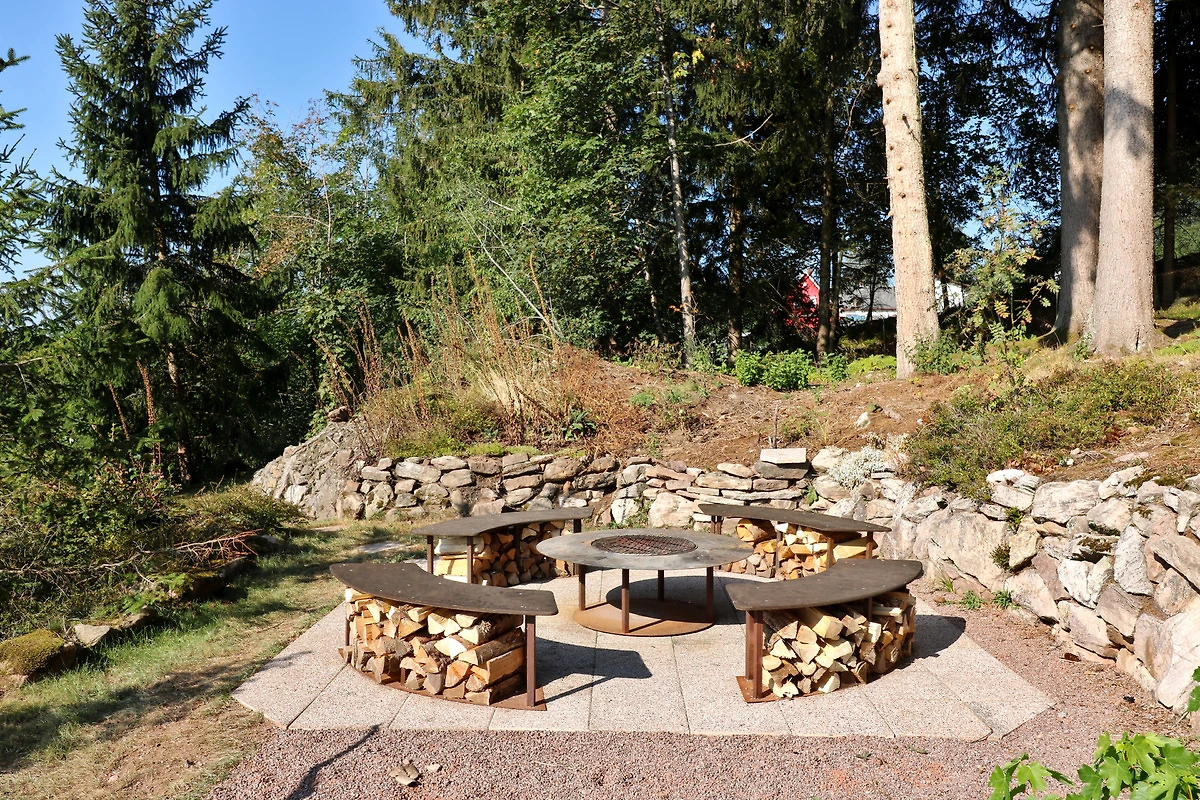 - 1 grosser Garten mit Terrasse, Gartenmöbeln, Grillstelle und Fasssauna
