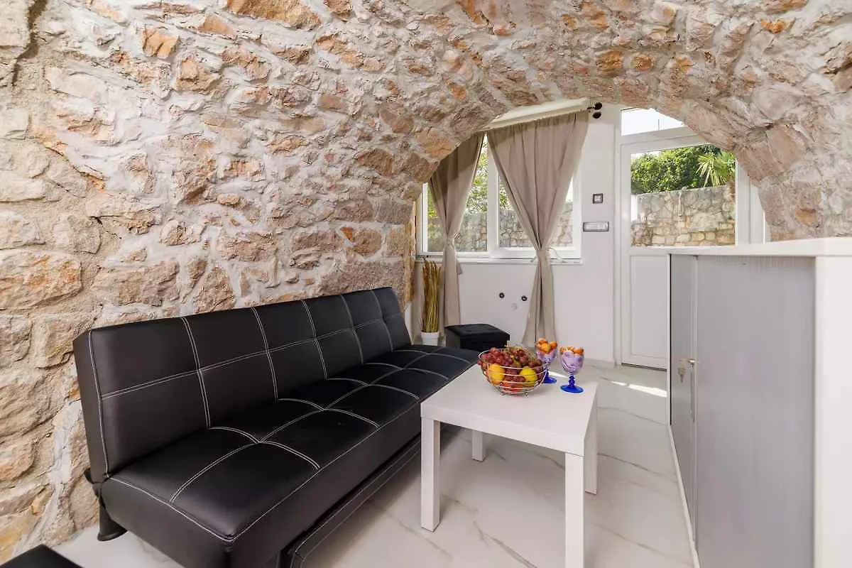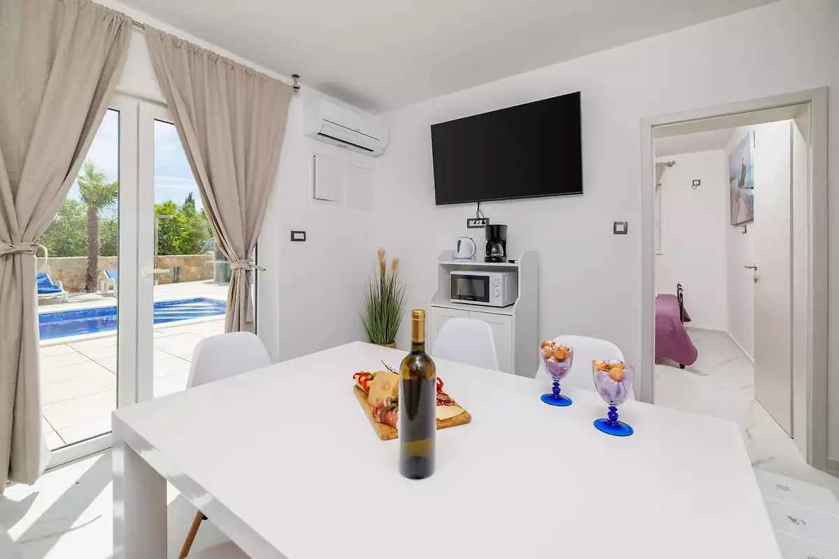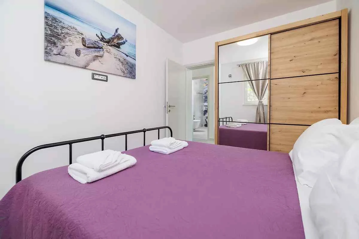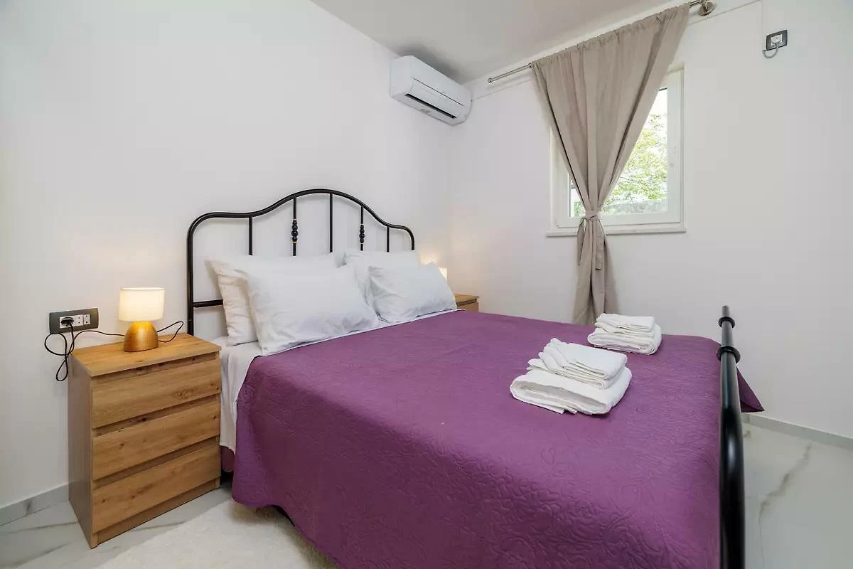 Kras-Dobrinj. Die Ferienwohnung befindet sich auf einem geschlossenen Gartengrundstück. Der Vermieter wohnt ständig im Haus, nutzt jedoch einen separaten Eingang. Die Zufahrt erfolgt direkt von der Hauptstrasse (asphaltiert). Parkplatz auf dem Grundstück.