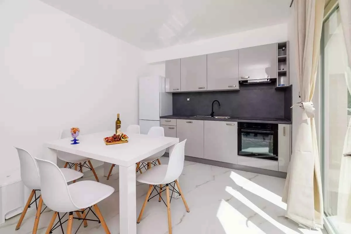 Die Ferienwohnung befindet sich in einem Apartementhaus und ist modern eingerichtet. Das Grundstück liegt in einem Wohngebiet, am Ortsrand. Auch wegen des Ausblicks vom Grundstück auf die Berge und der ruhigen und sonnigen Lage ist das Domizil beliebt. Zur Nutzung stehen zur Verfügung: Sonnenliege, Gartendusche, Grillmöglichkeit, Terrasse und Gartenmöbel.