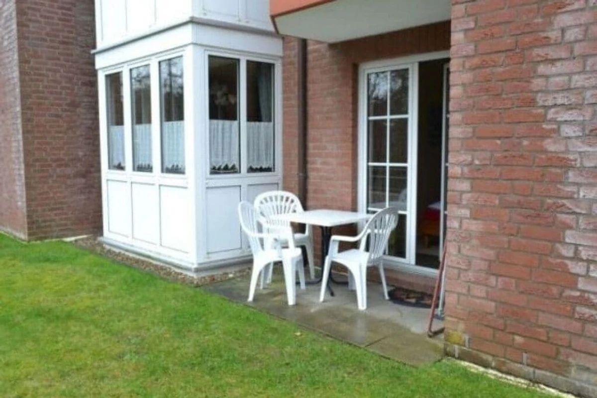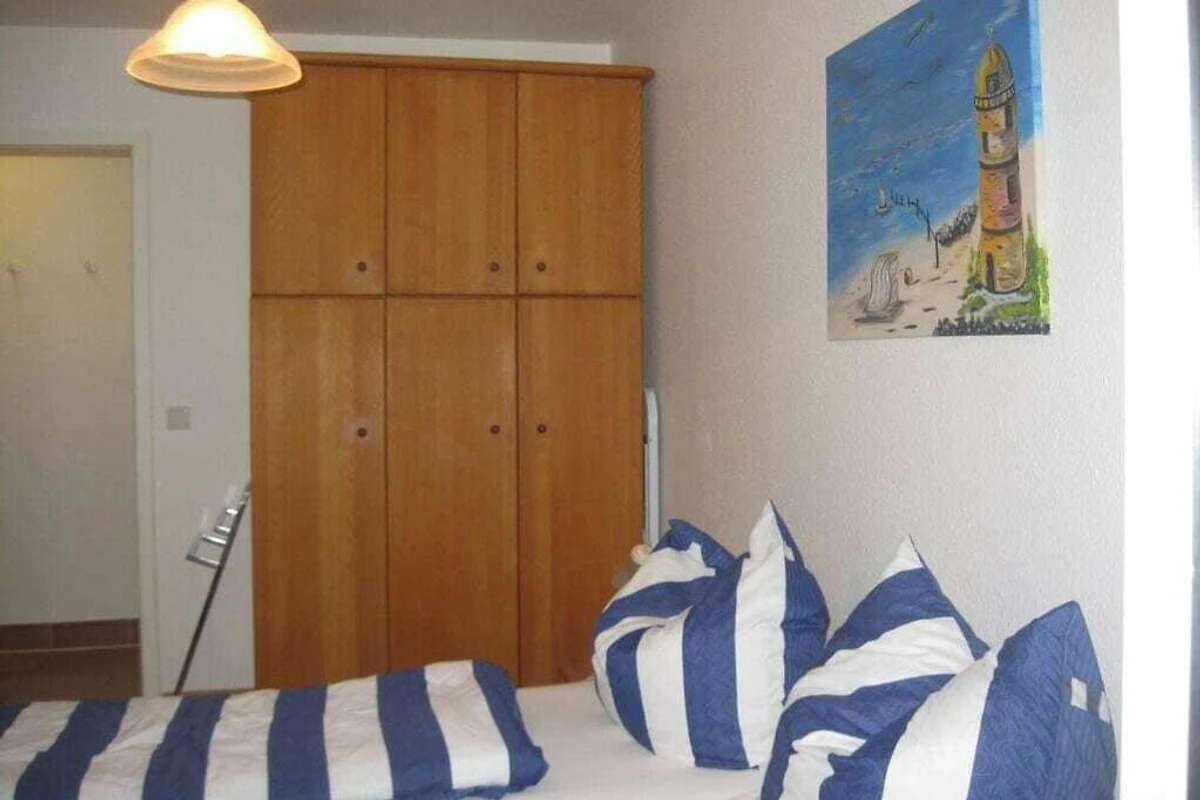 Ferienwohnung für 2-4 Personen, 3 Min. vom Strand entfernt. Gegenüber ist ein großer Kurpark mit der Kugelbakehalle, Tiergehegen und einem Kinderspielplatz.
