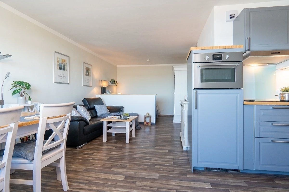 Die modern eingerichtete Ferienwohnung überzeugt nicht nur mit viel Liebe zum Detail, sondern vor allem durch ihren atemberaubenden Weitblick über die Wiesen, die Steilküste und bis hin zur Ostsee.