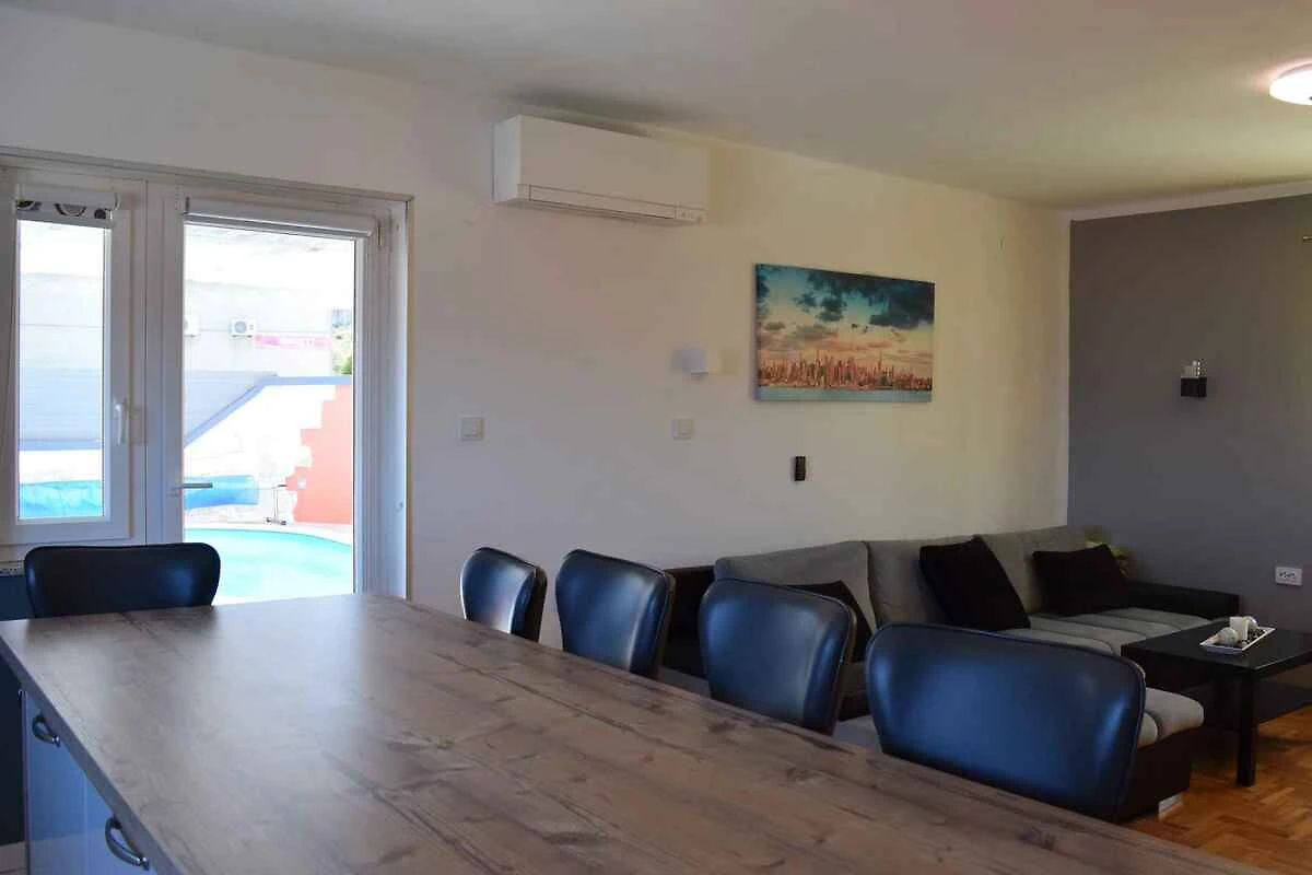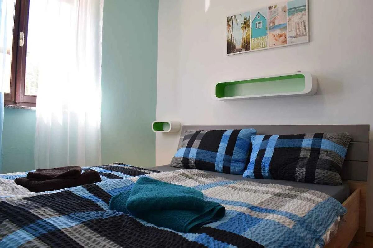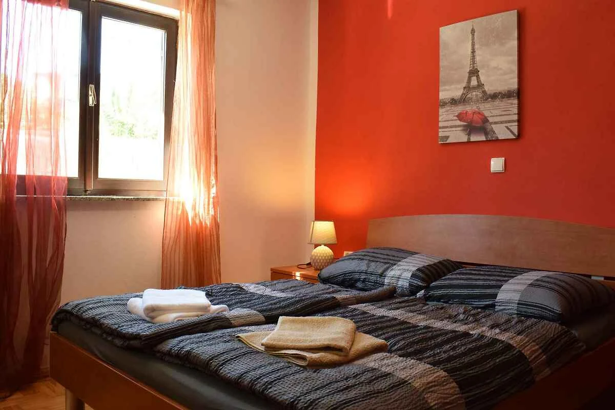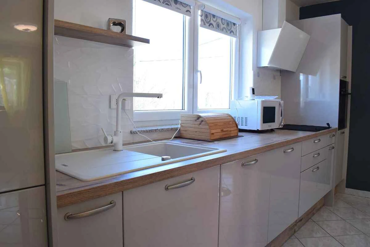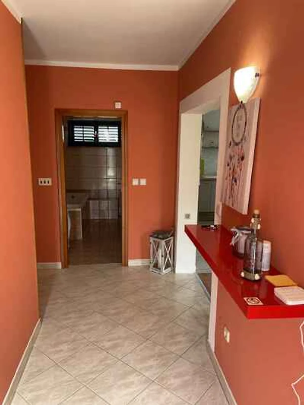 Risika. Die Ferienwohnung befindet sich auf einem 428 qm grossen, geschlossenen Grundstück mit Sträuchern und Bäumen, von einem Zaun und einer Mauer begrenzt. Der Vermieter wohnt nicht im Haus oder auf dem Grundstück. Die Zufahrt erfolgt direkt von der Hauptstrasse. Parkplatz auf der Strasse vor dem Haus.