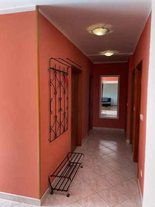 Der Eingang in Ihre Ferienwohnung befindet sich im Erdgeschoss, ist ebenerdig und führt über die 98 qm grosse Terrasse direkt in den Vorraum mit Garderobe und Türen zu allen Räumen. 3 Schlafzimmer jeweils (20 qm) mit 1 Doppelbett (Queensize). Küche (25 qm) mit Essecke, Elektroherd (4 Platten), Backofen, Geschirrspüler, Kühlschrank, Mikrowelle, Kaffeemaschine, Kapselmaschine und elektrischem Wasserkocher. Vorraum im Wohnzimmer mit Sitzecke und TV. Flur im Flur (22 qm) mit Klimaanlage. Bad (15 qm) mit Badewanne, Waschmaschine, 1 Waschbecken, WC, Bidet, Föhn und Fenster. Bad (15 qm) mit Dusche, 1 Waschbecken, WC, Föhn und Fenster.