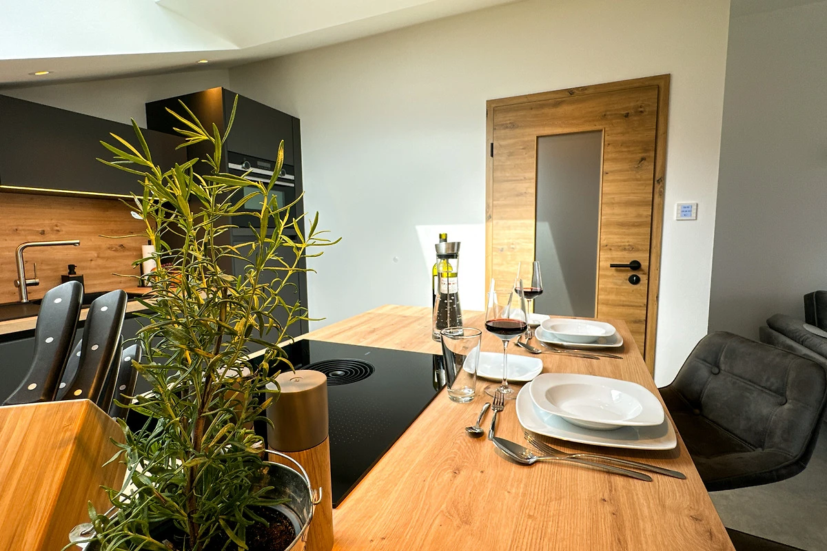 Richtige Urlaubsstimmung kommt auf dem schönen Balkon der Ferienwohnung auf. Im Urlaub kochen? Los geht´s, die Küche ist gut ausgestattet, sogar mit einer Spülmaschine.