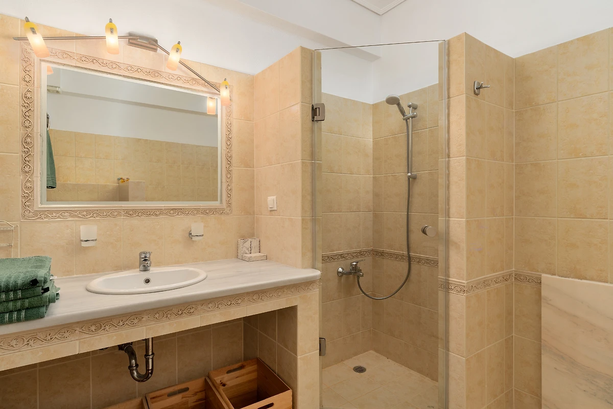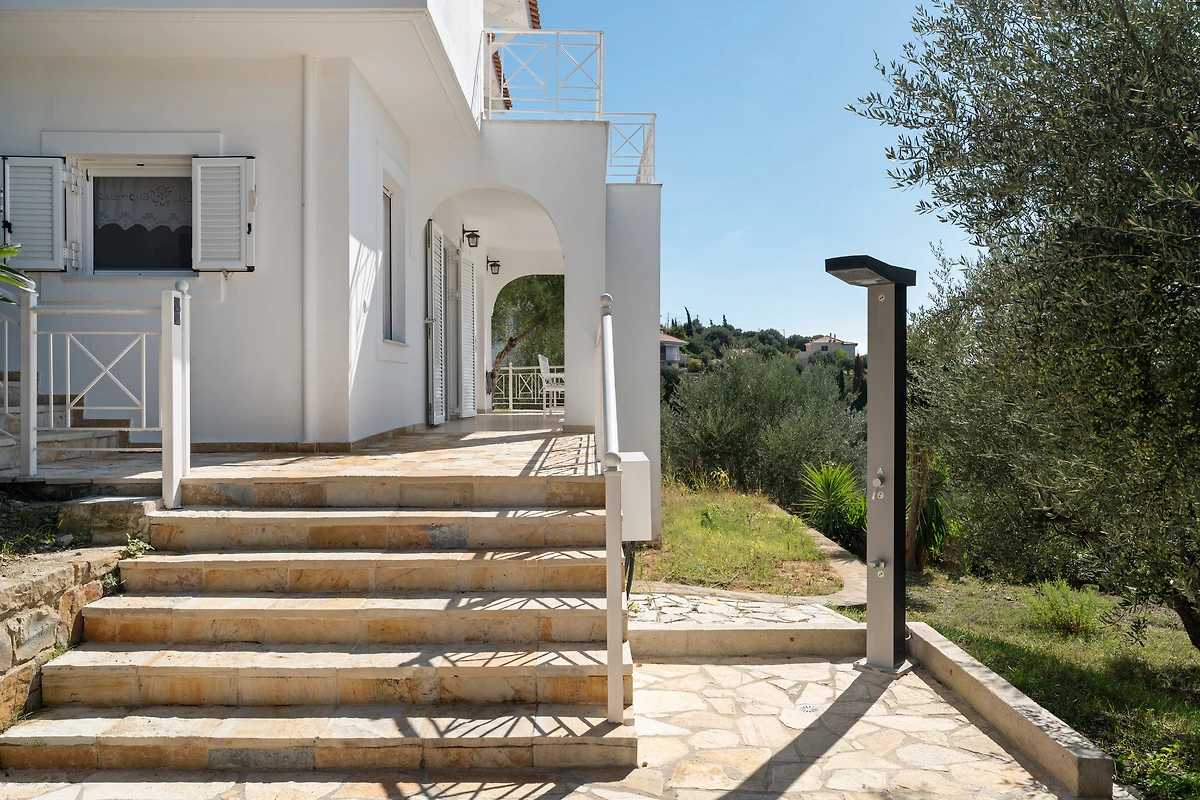 Das Haus ist von einem wunderschönen Palmen und Olivenbaum Garten umgeben, der zum Entspannen einlädt. Dort finden Sie auch einen Grillplatz, ideal für gemütliche Abende mit Familie und Freunden. Ein Highlight ist sicherlich der Swimmingpool, der an heißen Tagen für eine willkommene Abkühlung sorgt. Für Ihr Fahrzeuge stehen Parkplätz am Grundstück zur Verfügung.