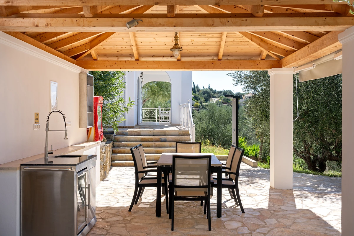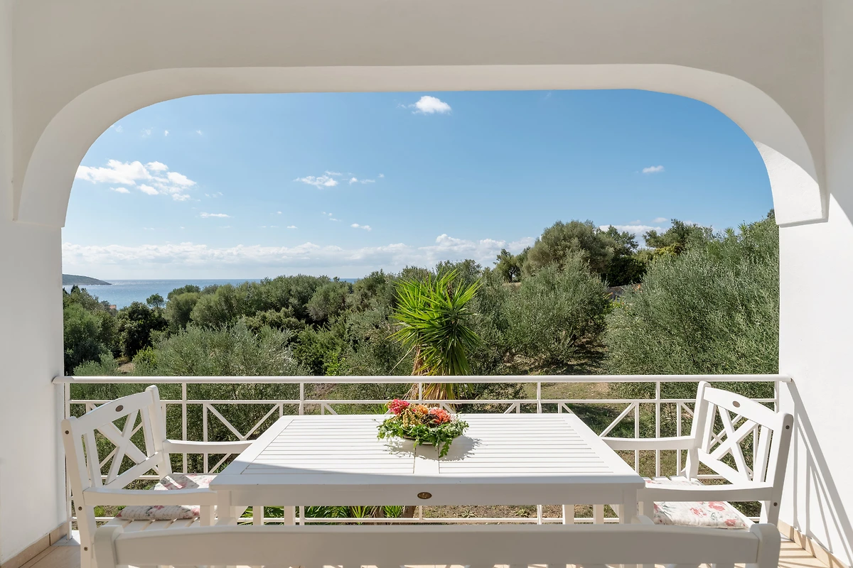 Die Terrasse des Hauses bietet einen atemberaubenden Blick auf das Meer und die umliegende Landschaft. Dank den Klimaanlagen ist es auch an heißen Tagen angenehm kühl im Haus.
